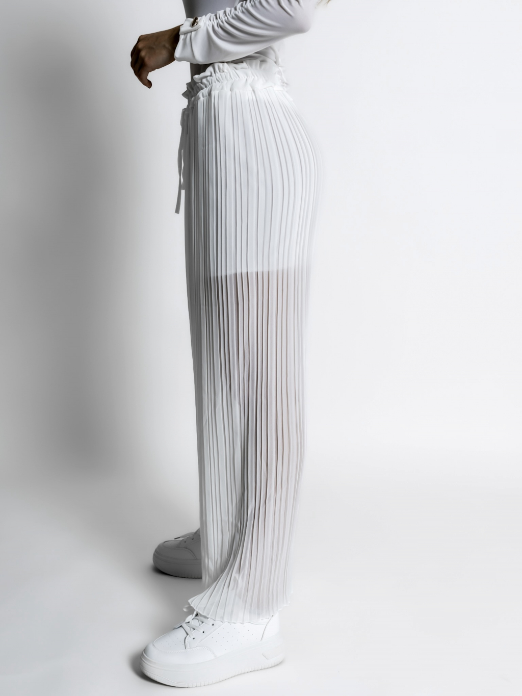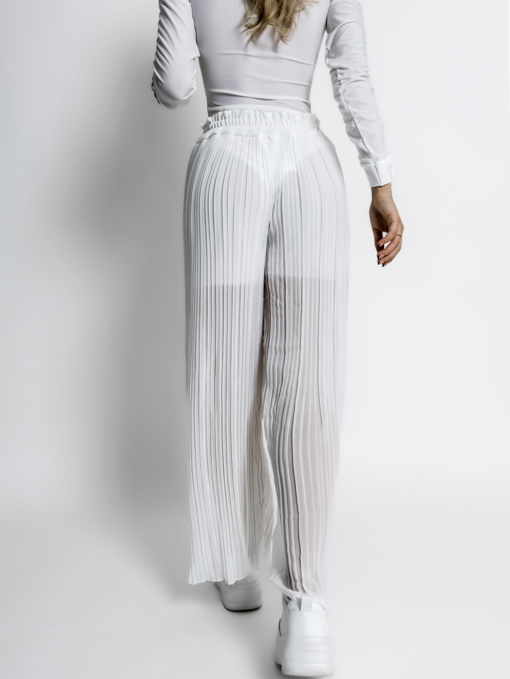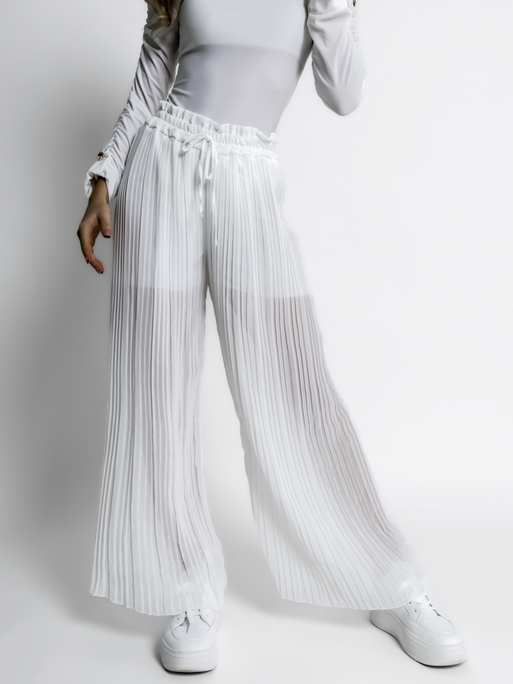 Bílé basic plisované široké kalhoty SELIE