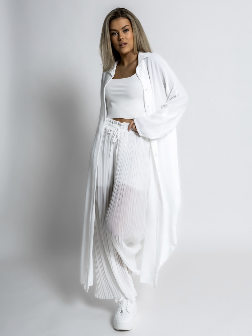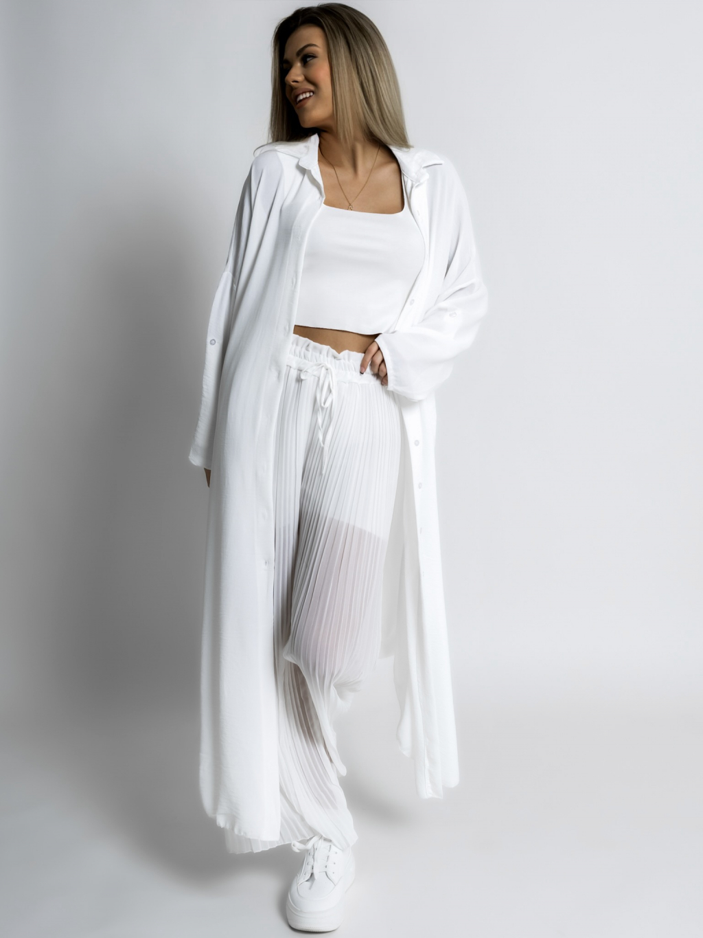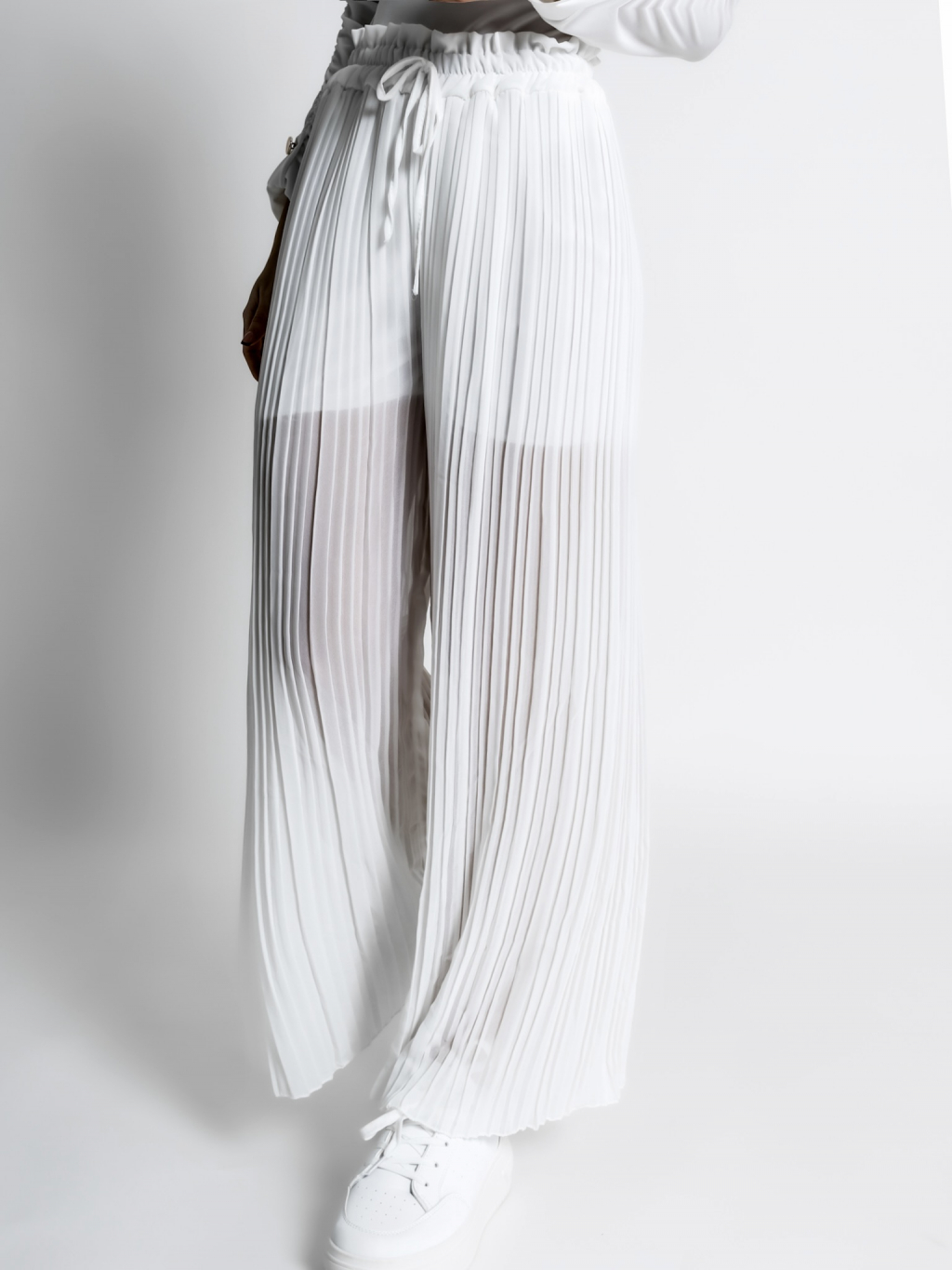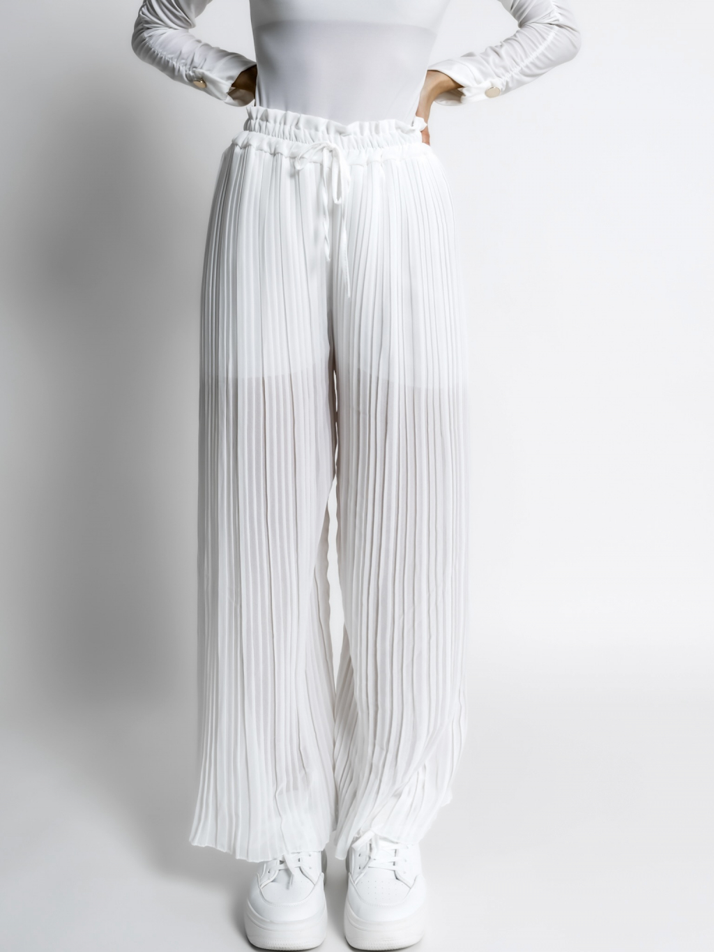 Bílé basic plisované široké kalhoty SELIE