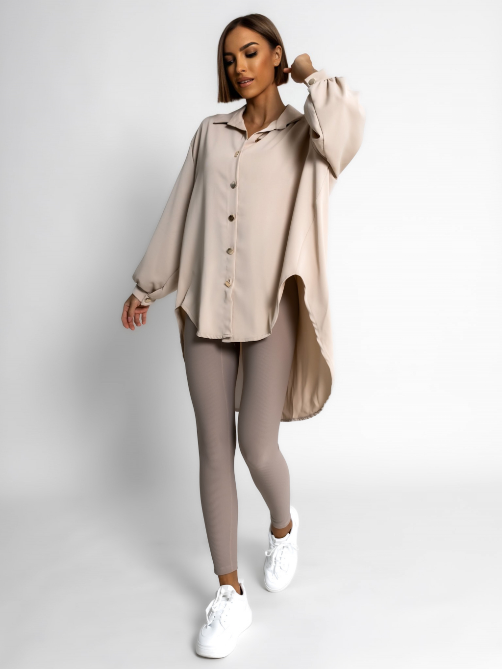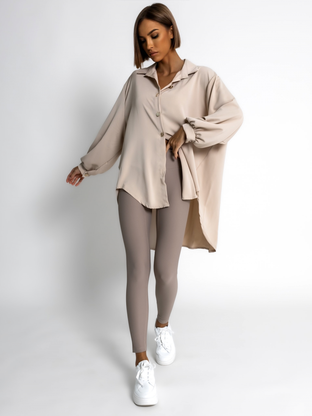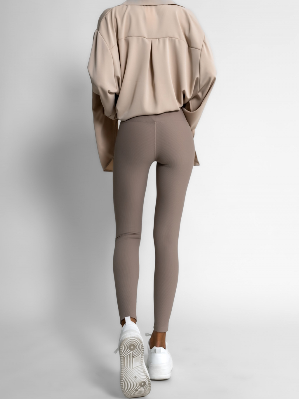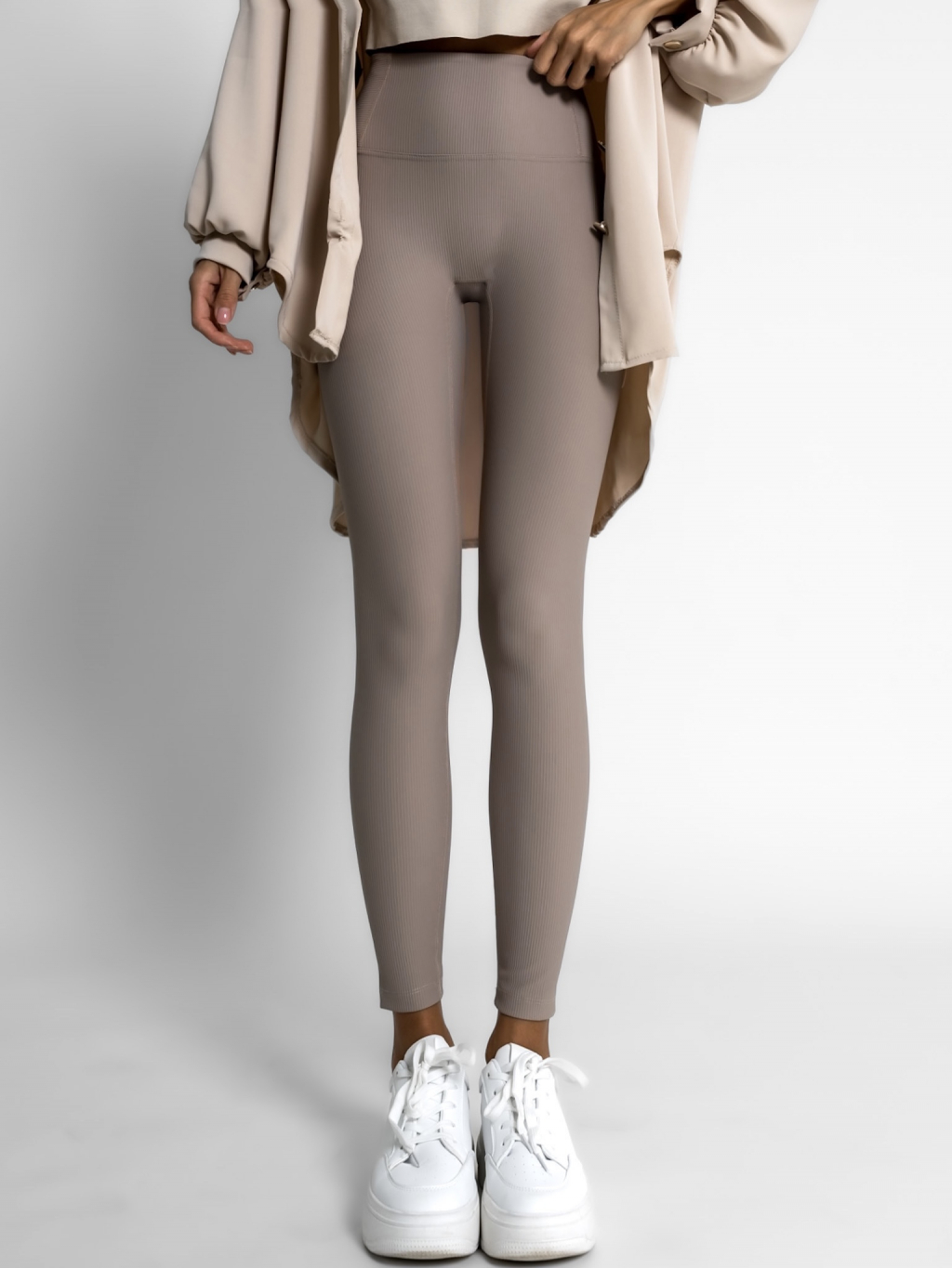 Béžové elastické basic legíny DARLAN s vysokým pasem