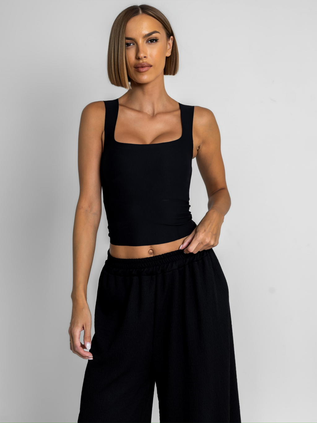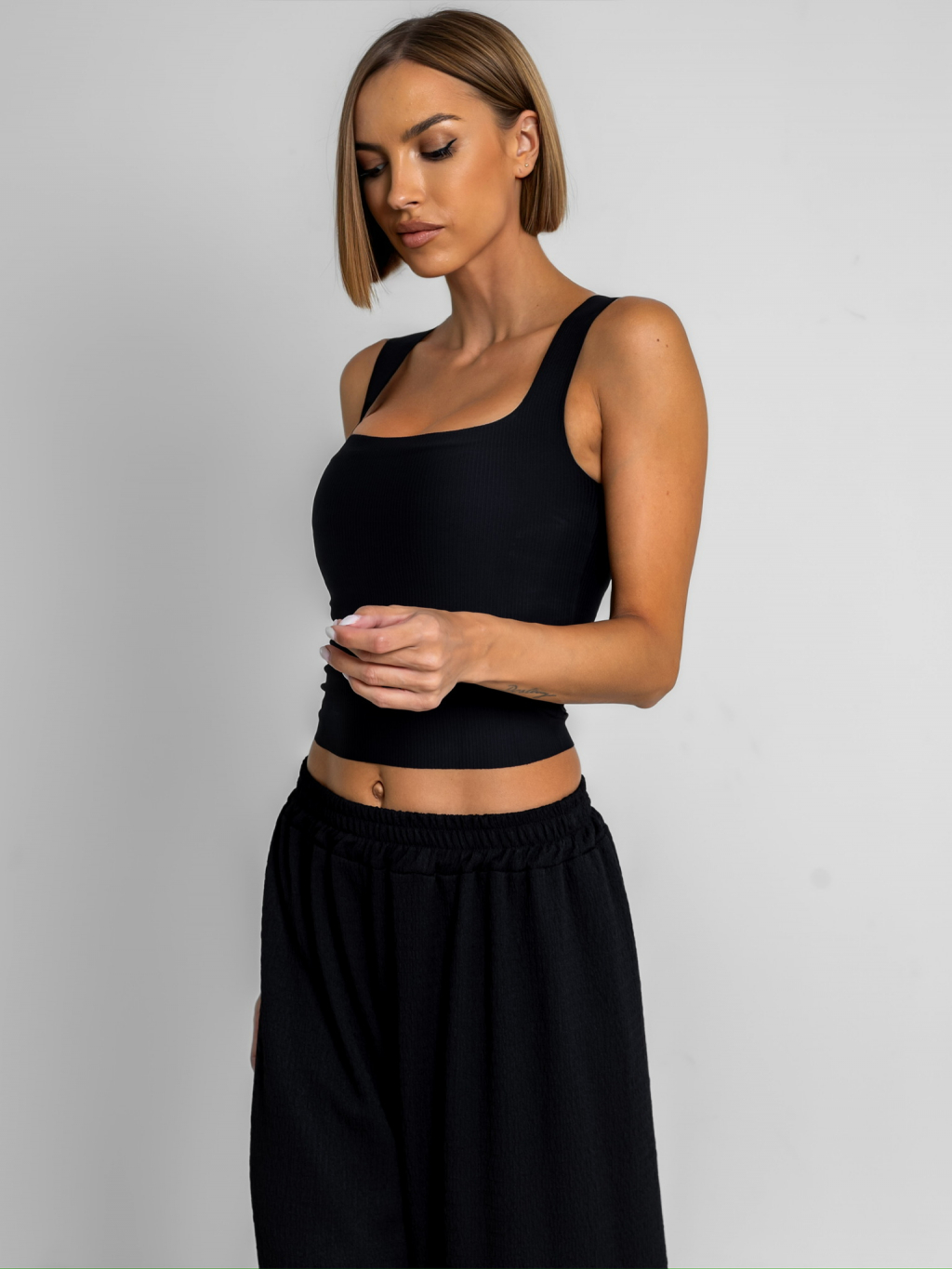 Černý basic elastický top CAMILLA s vycpávkami