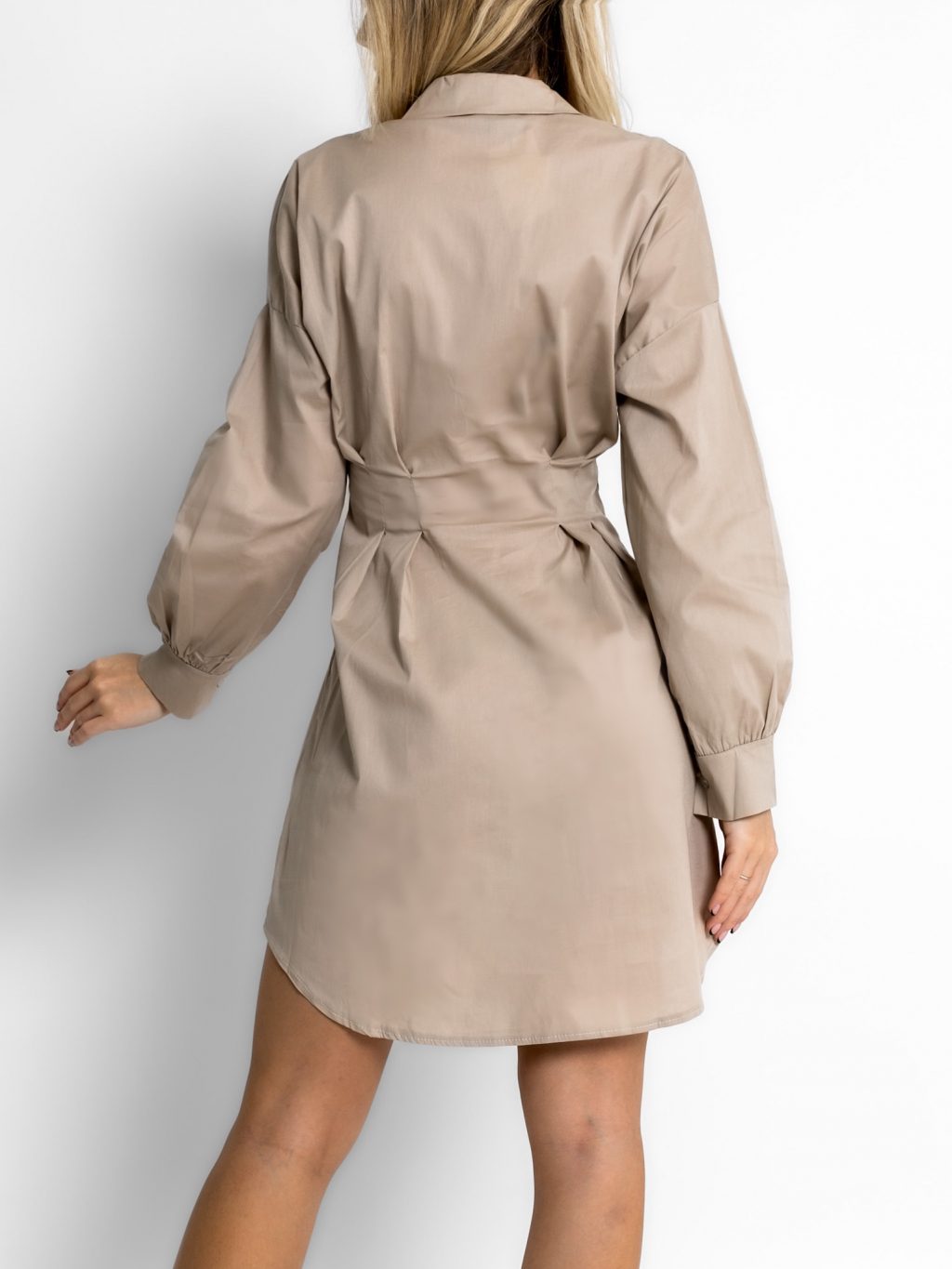 Béžové basic košilové vypasované šaty SIERRA 95% bavlna