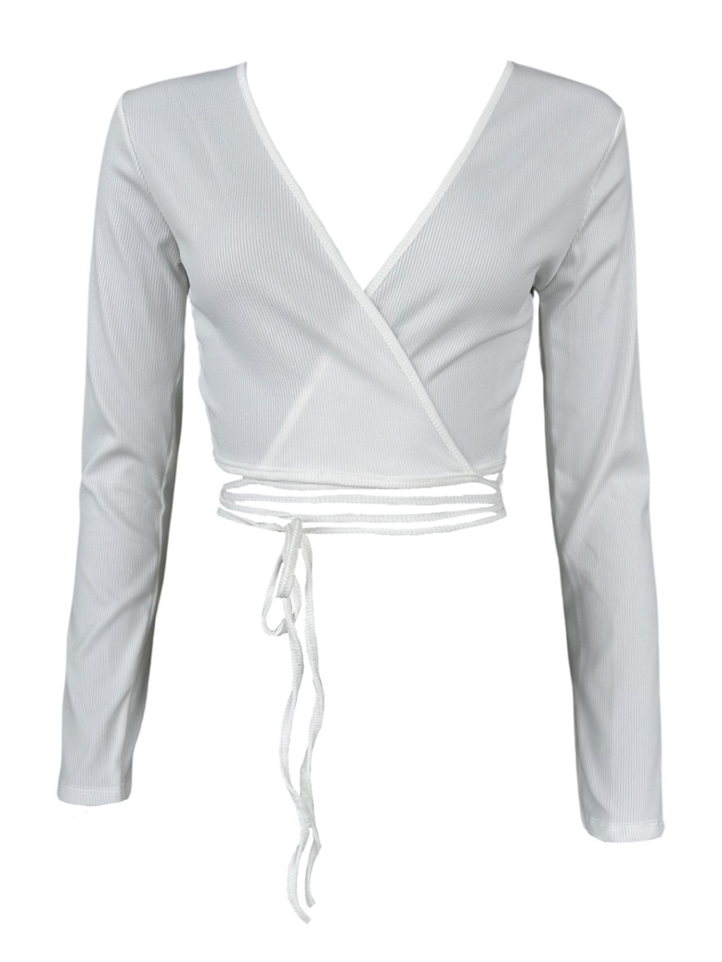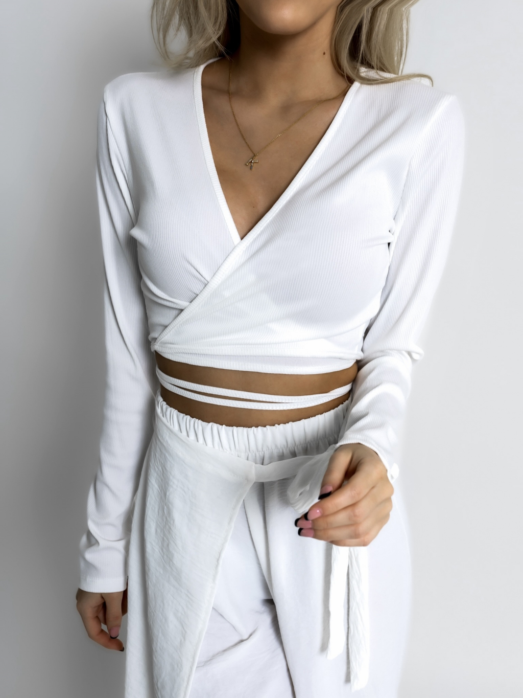 Bílý zavinovací basic top MIRDRE s dlouhým rukávem