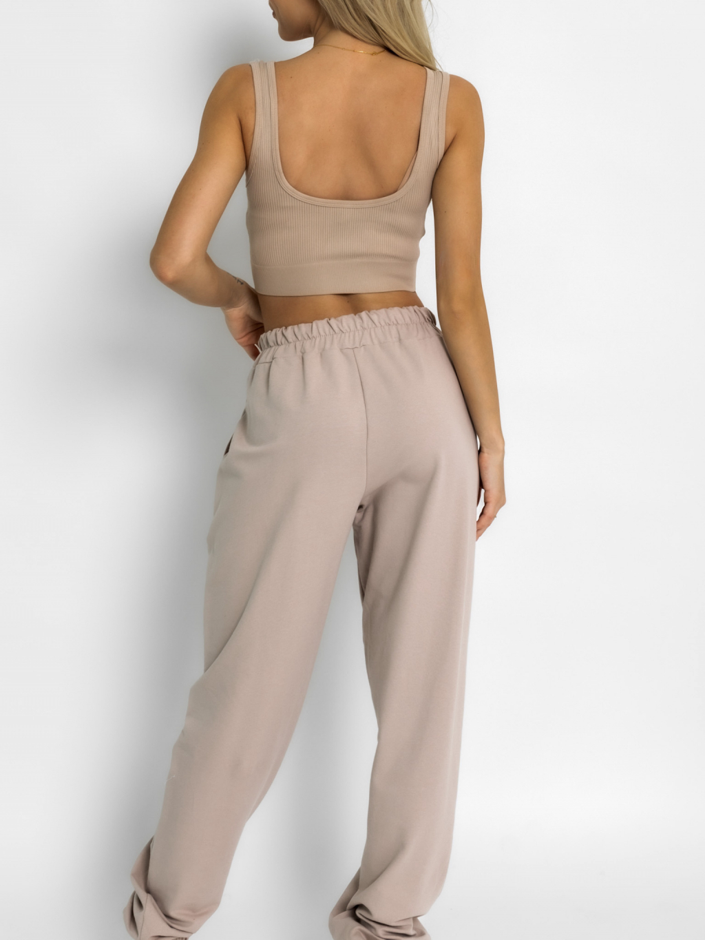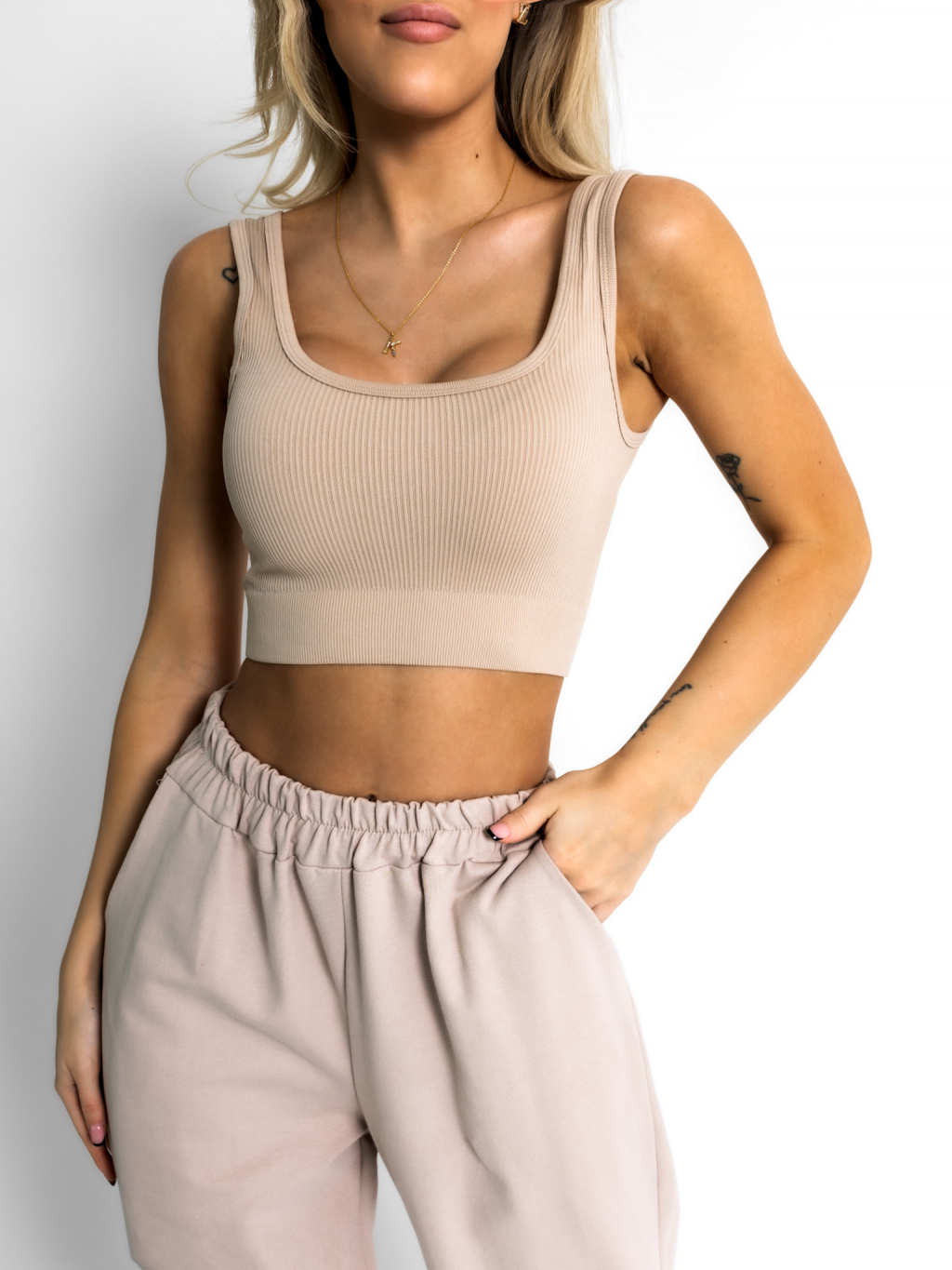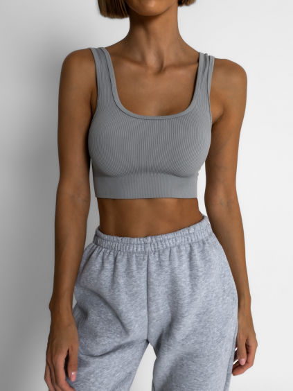 Hnědý basic žebrovaný sportovní top ROJELIO