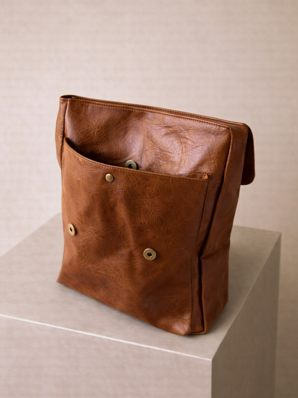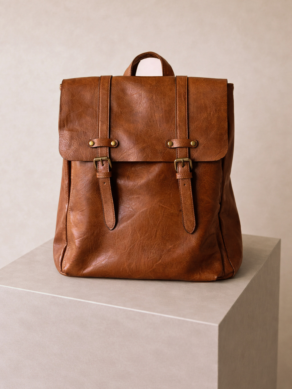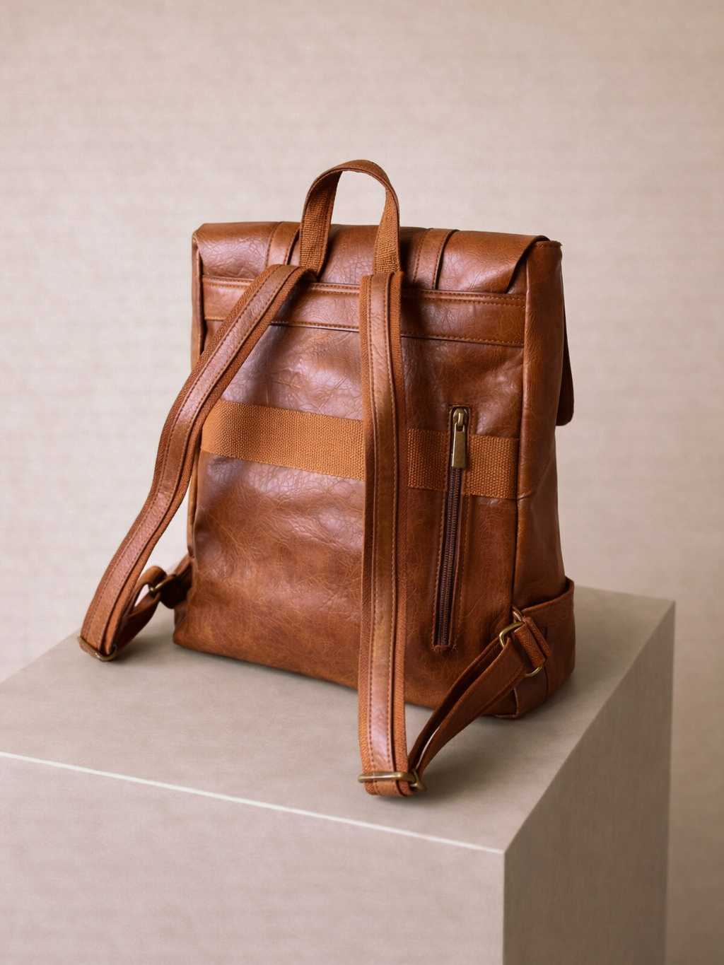 Hnědý elegantní koženkový baťoh MEQUIRO