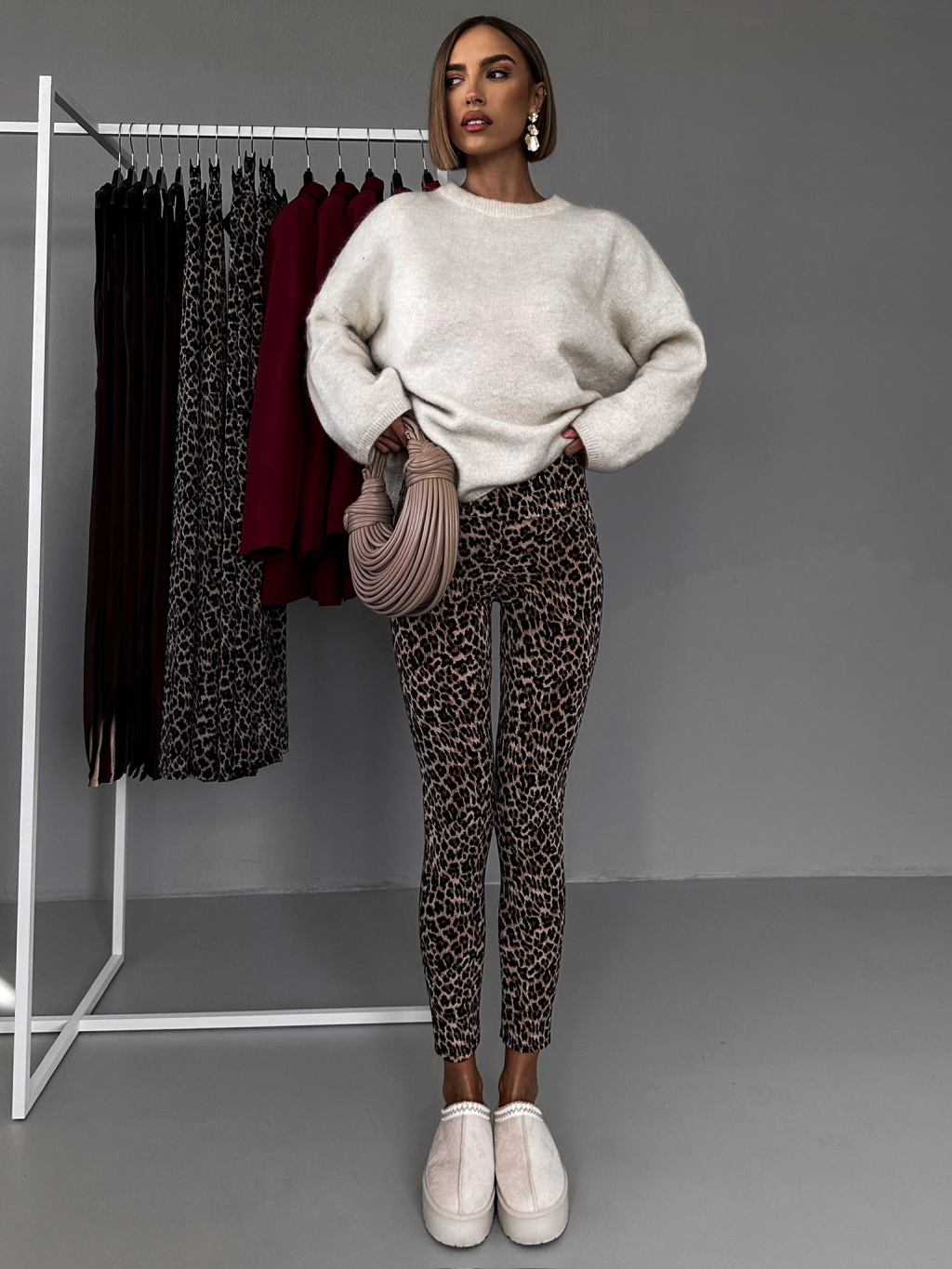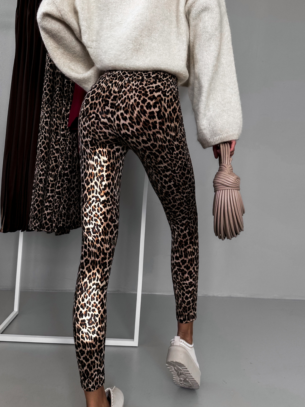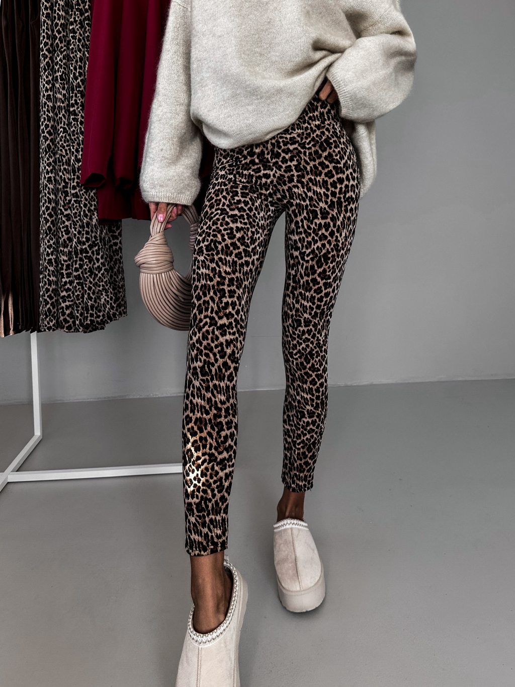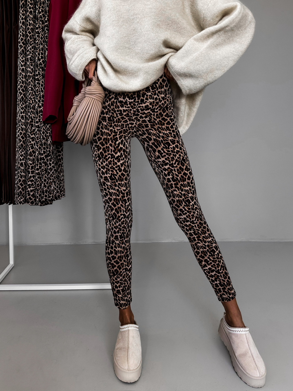 Leopardí elastické legíny DARYNKA s vyšším pasem
