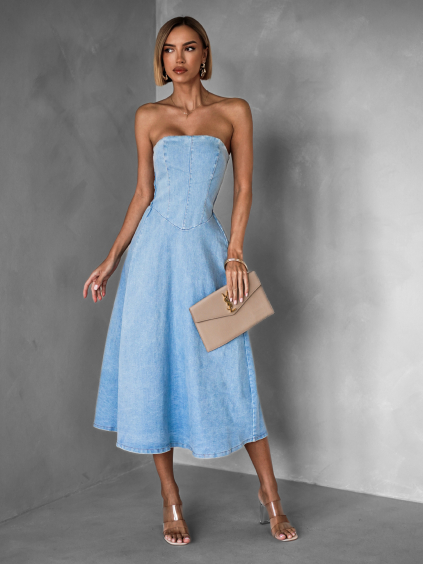 Světle modré džínové dlouhé šaty JEROME bez ramínek