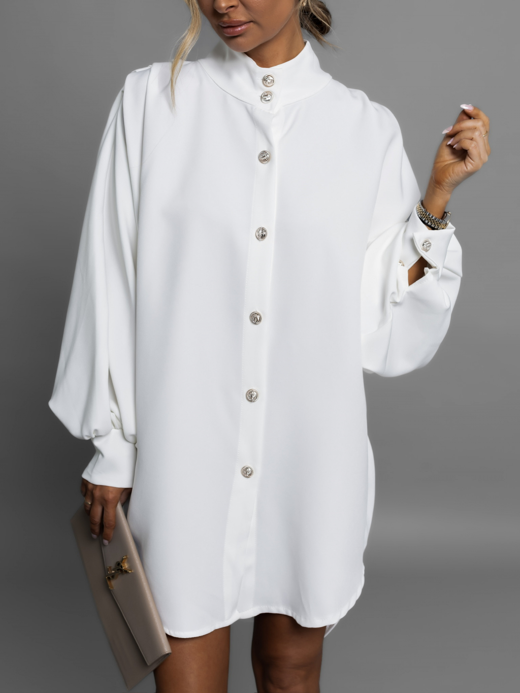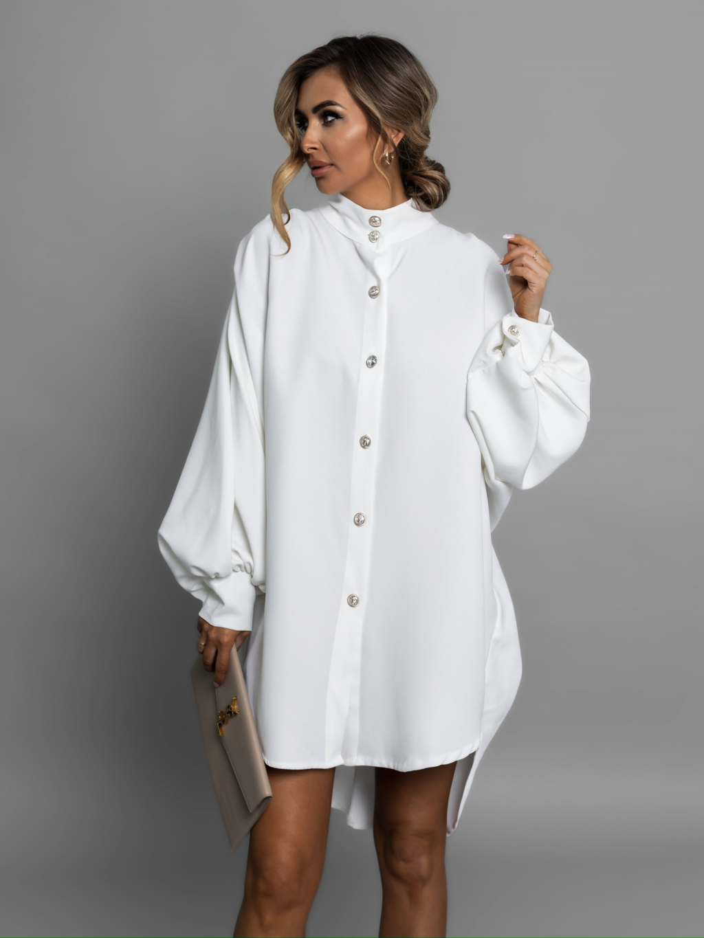 Bílá oversize dlouhá elegantní košile KAMILIS