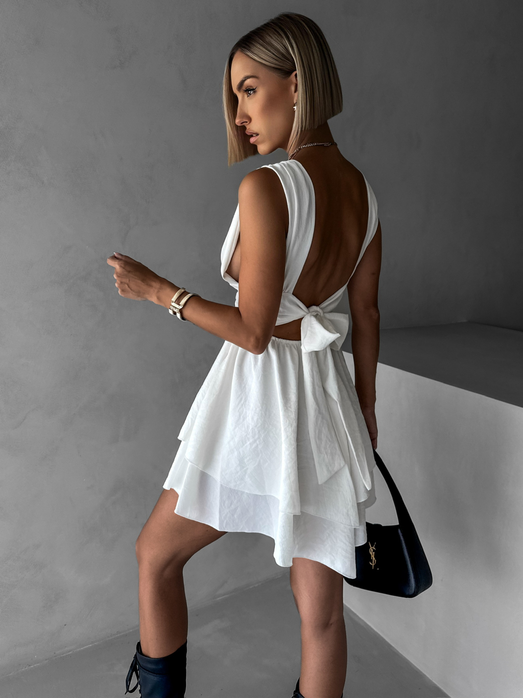 Bílé vzdušné krátké šaty ORYNA s výstřihem