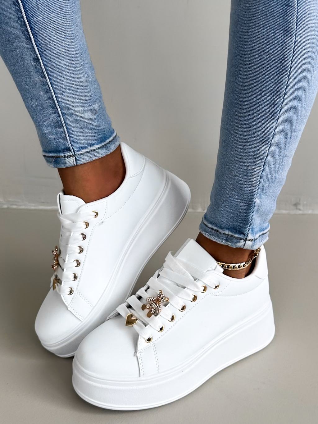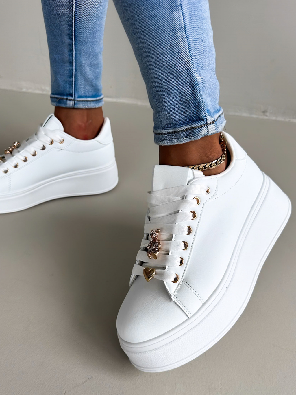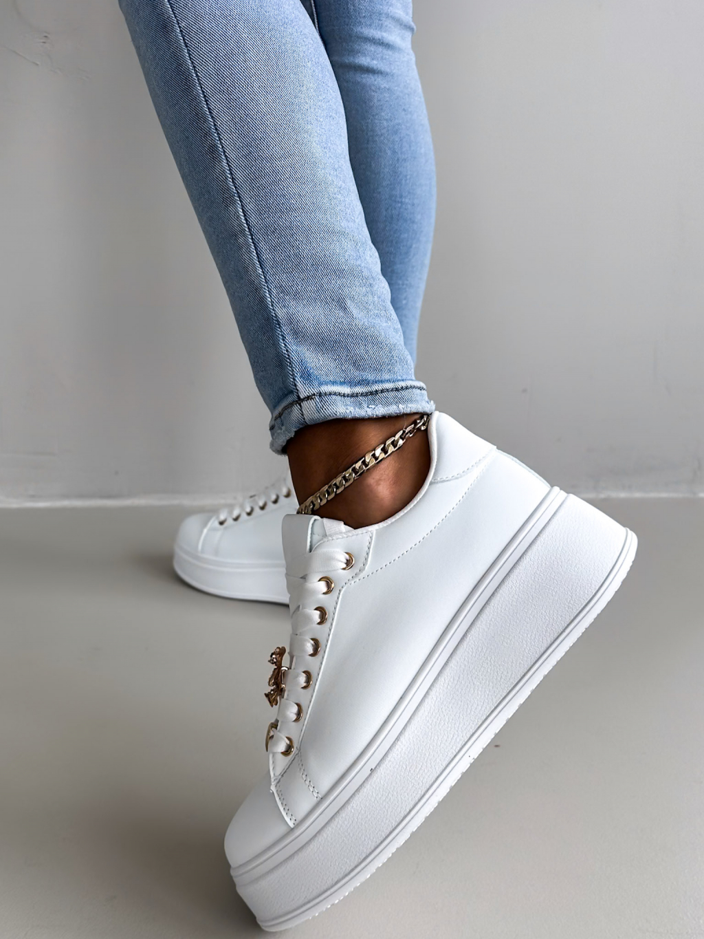 Bílé vysoké tenisky PARKO s vysokou podrážkou