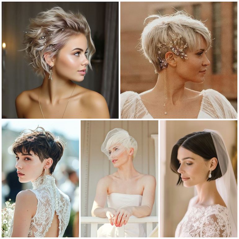 Neboj se, že by krátké vlasy znamenaly méně možností. Právě naopak! Vsaď na hladké mikádo s leskem, které podtrhne tvou ženskost. Jemné vlny dodají účesu objem a romantiku, zatímco uhlazený pixie střih může vypadat neuvěřitelně žensky a v kombinaci s výraznými náušnicemi docílíš sexy elegantního looku. Pro decentní zdobení můžeš zvolit čelenku s perličkami nebo minimalistickou sponku. Díky krátkému střihu vsaď na svatební šaty s odhalenými zády. Je to ženský a velice sexy detail, který je ale stále vkusný a decentní.