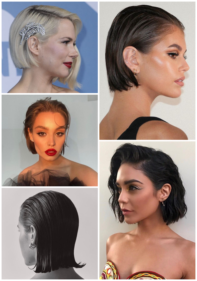 Krátké vlasy rozhodně nejsou překážkou k oslnivému účesu. Jednoduchý a moderní wet look je tou pravou volbou. Vlasy vyžehli žehličkou a rovnoměrně na ně nastříkej sea salt sprej. Dobře funguje také gel, ale tady si dej pozor na větší zatížení vlasů. Ve finále by mohly vypadat spíše mastně. Poté učeš hřebenem rovně nebo lehce na patku, podle toho, co ti více vyhovuje. Po načesaní zafixuj lakem na vlasy. Účes bude vypadat dokonale i pokud přidáš ozdobné sponky. Sponky s perlami, kamínky nebo kovovými detaily umí dodat účesu noblesu a přitáhnout pozornost. Skvěle tak jdou doladit s designem šatů.