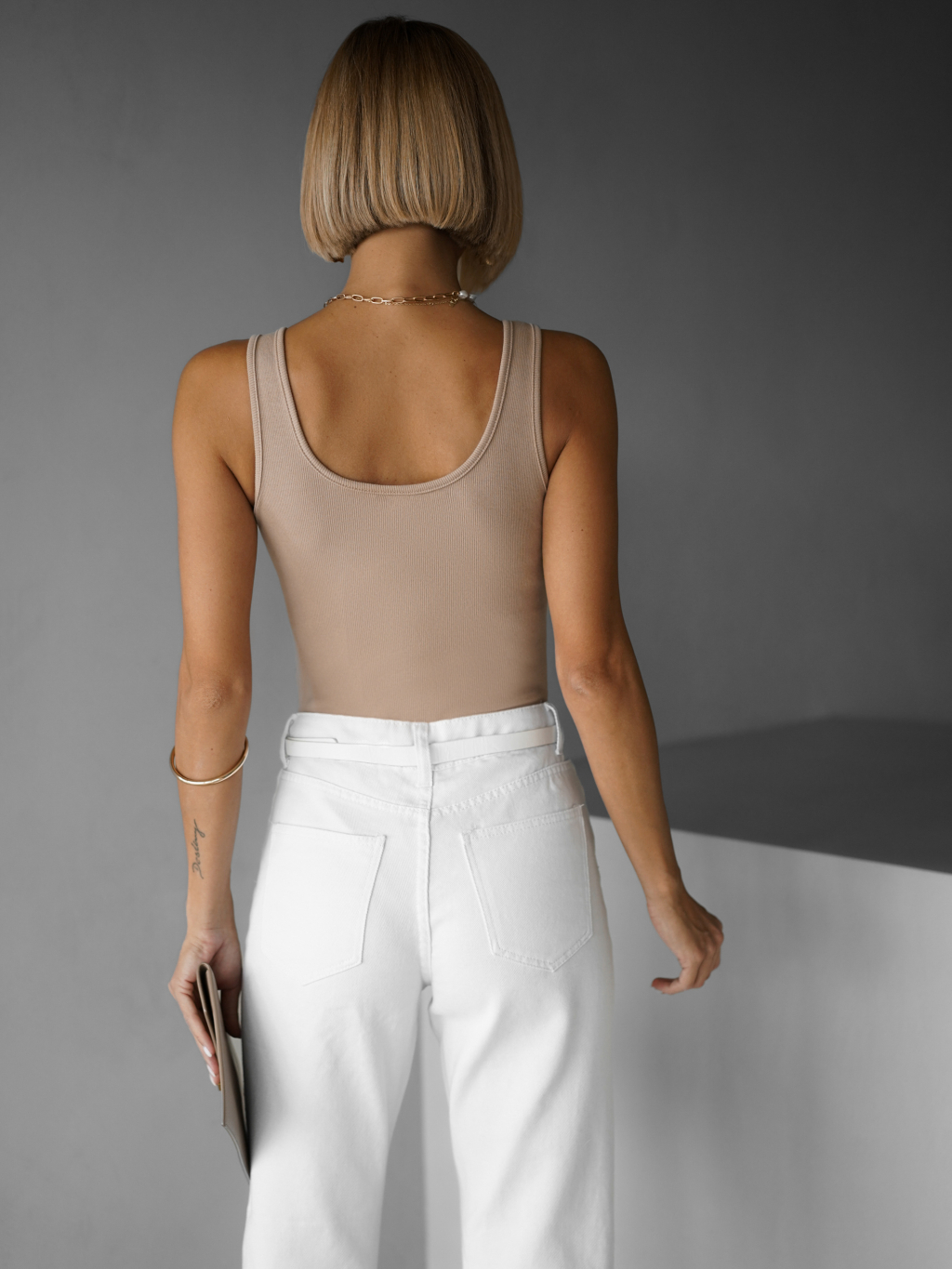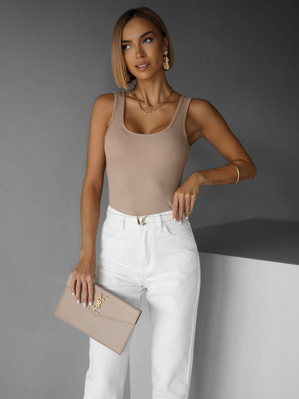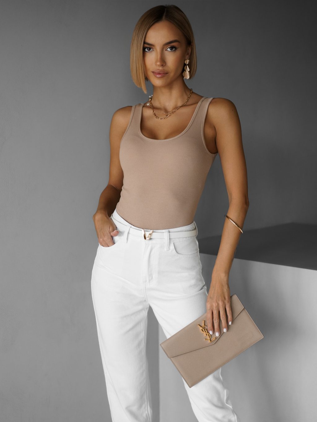 Hnědé jednoduché basic body CIMILO s výstřihem