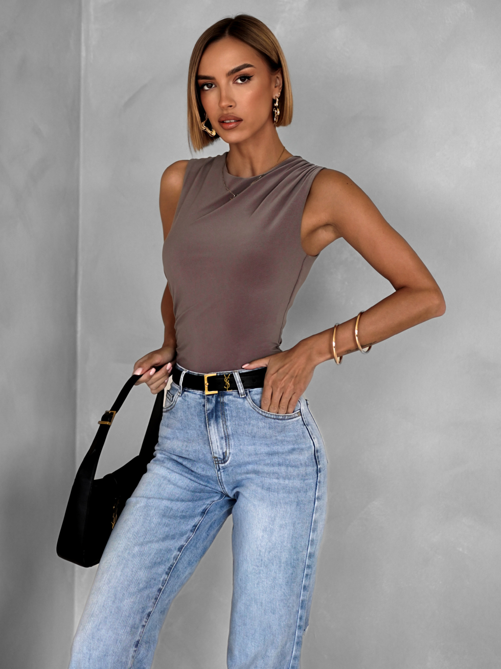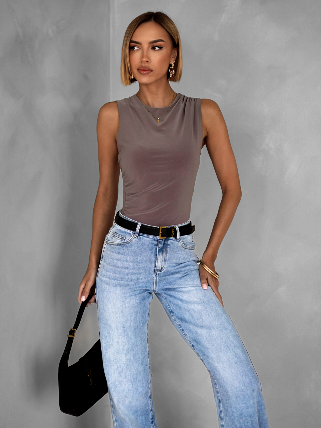 Tmavě béžové elegantní basic body KATERINA