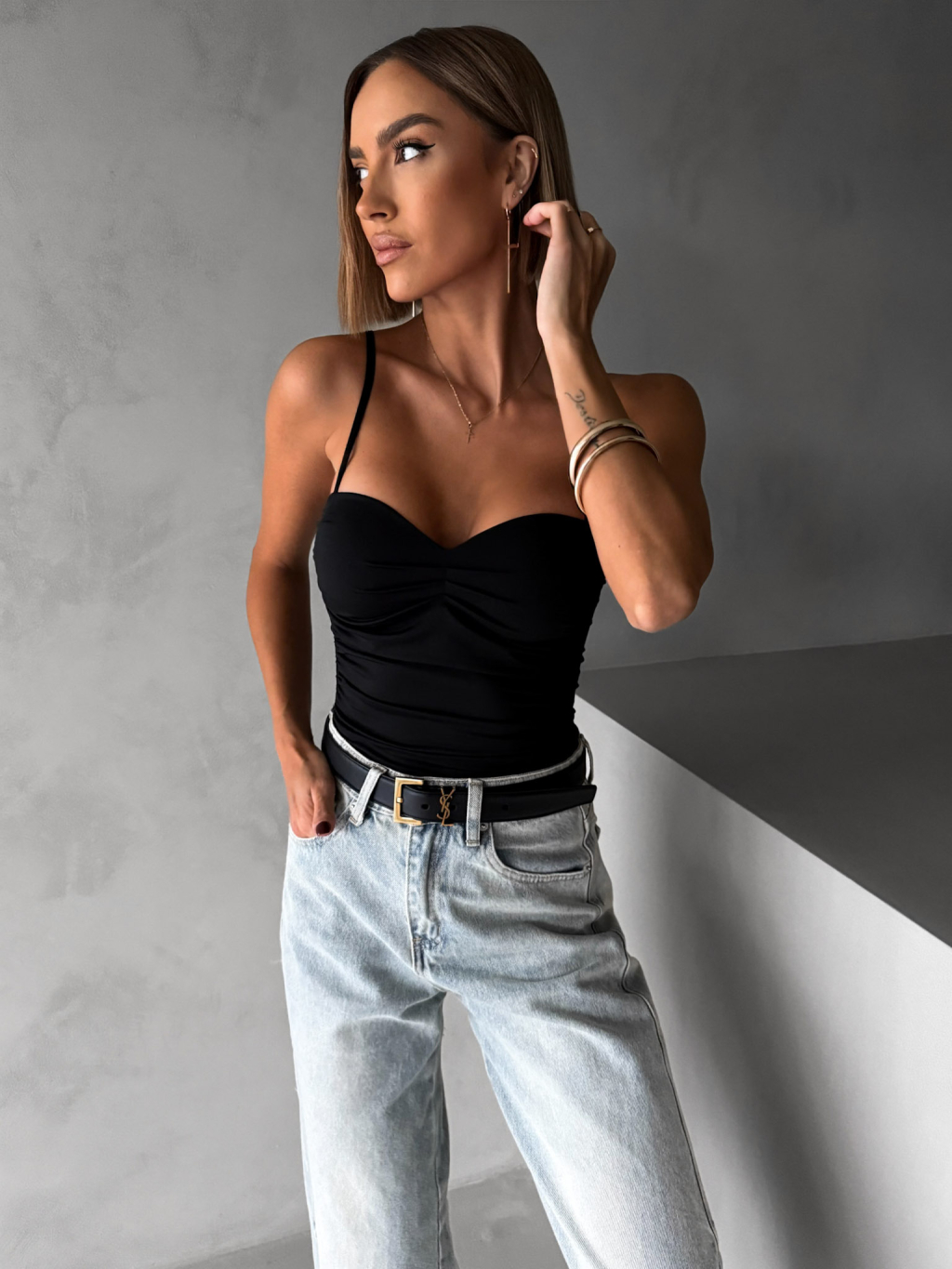 Černé elegantní body korzet AMIRLAN