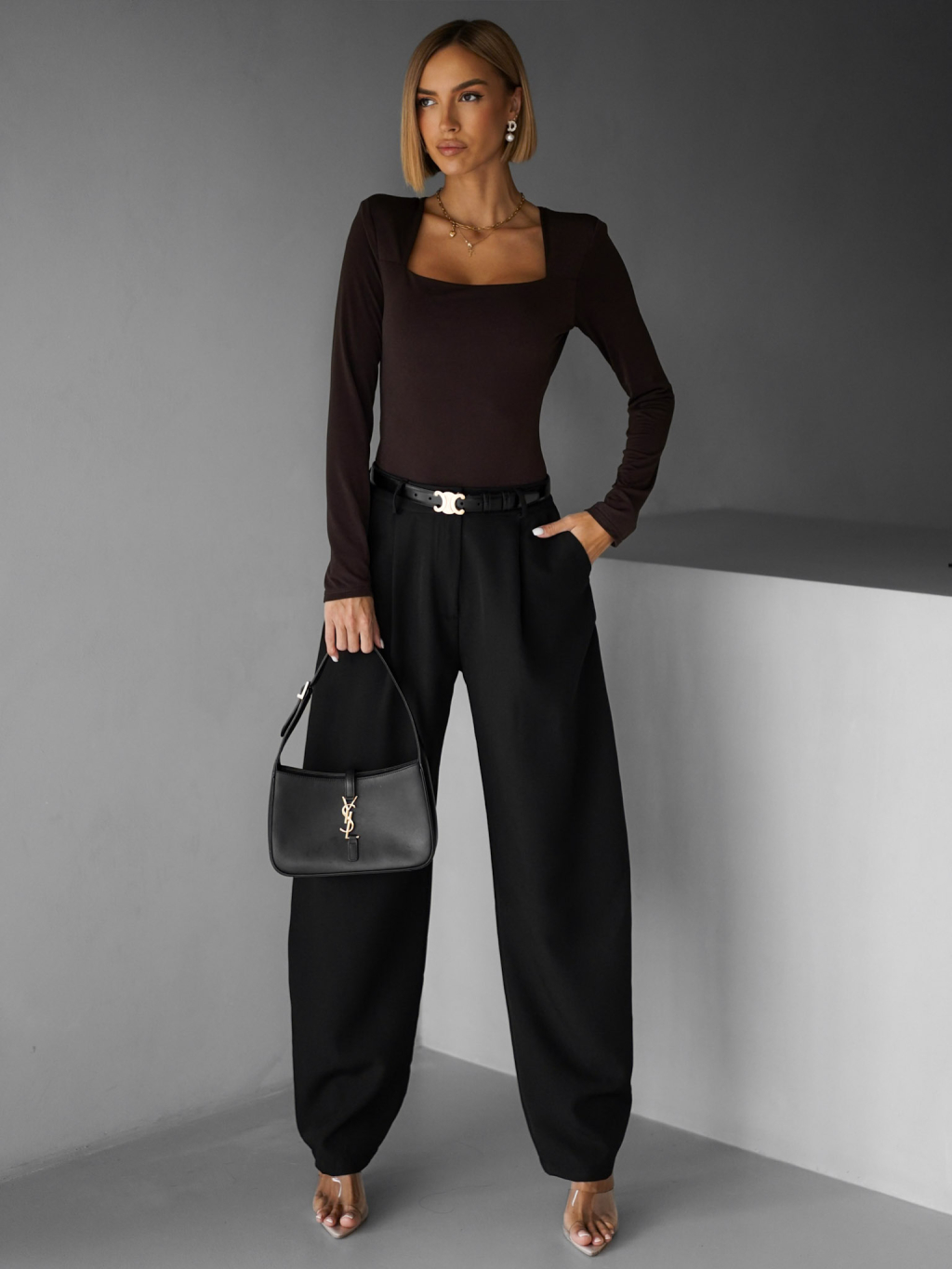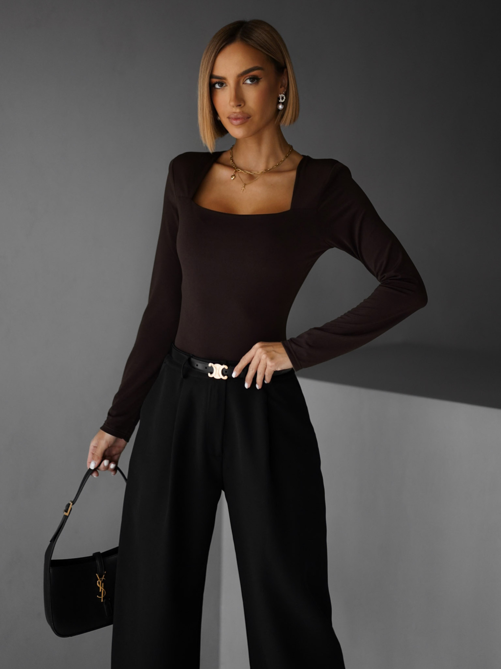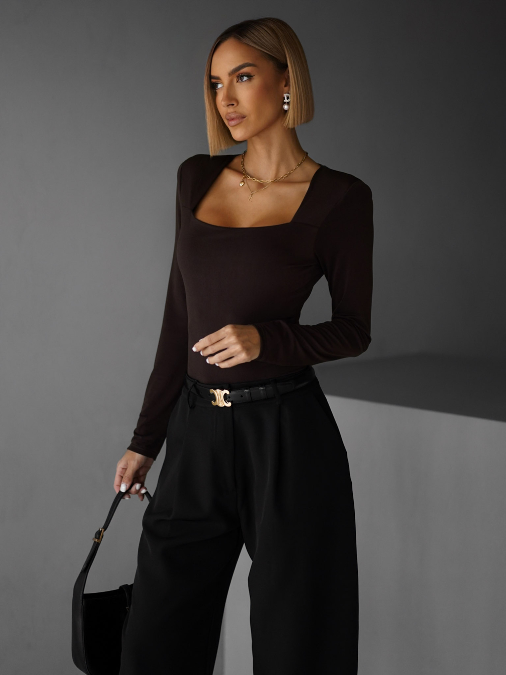Hnědé basic body LOVATY s výstřihem
