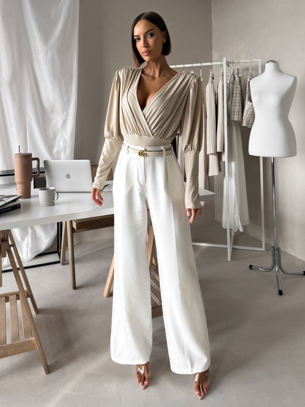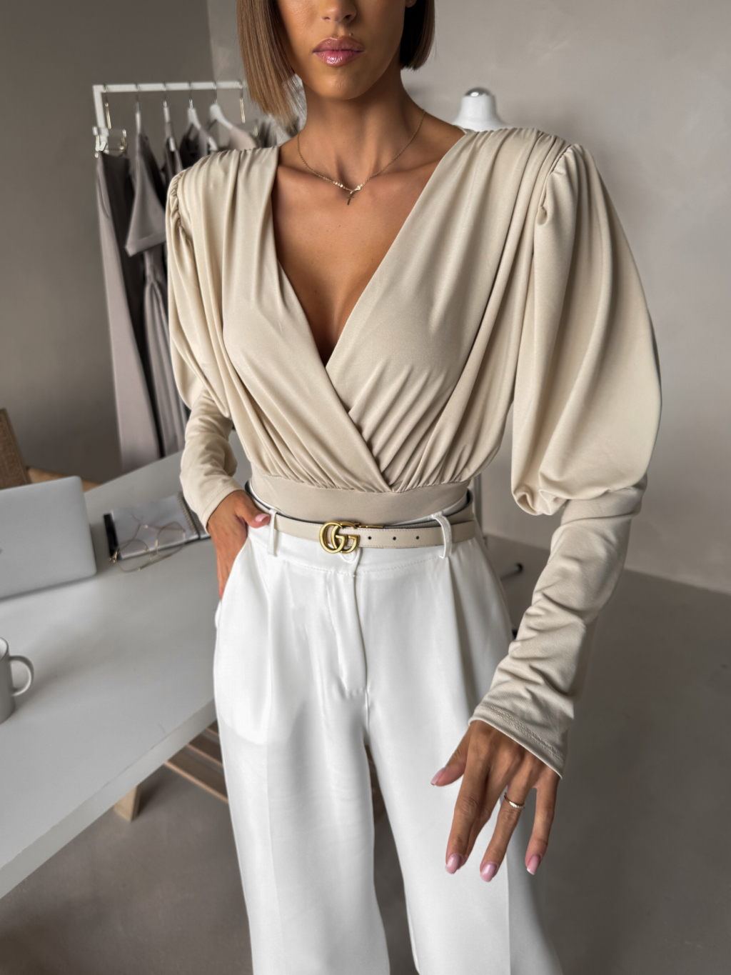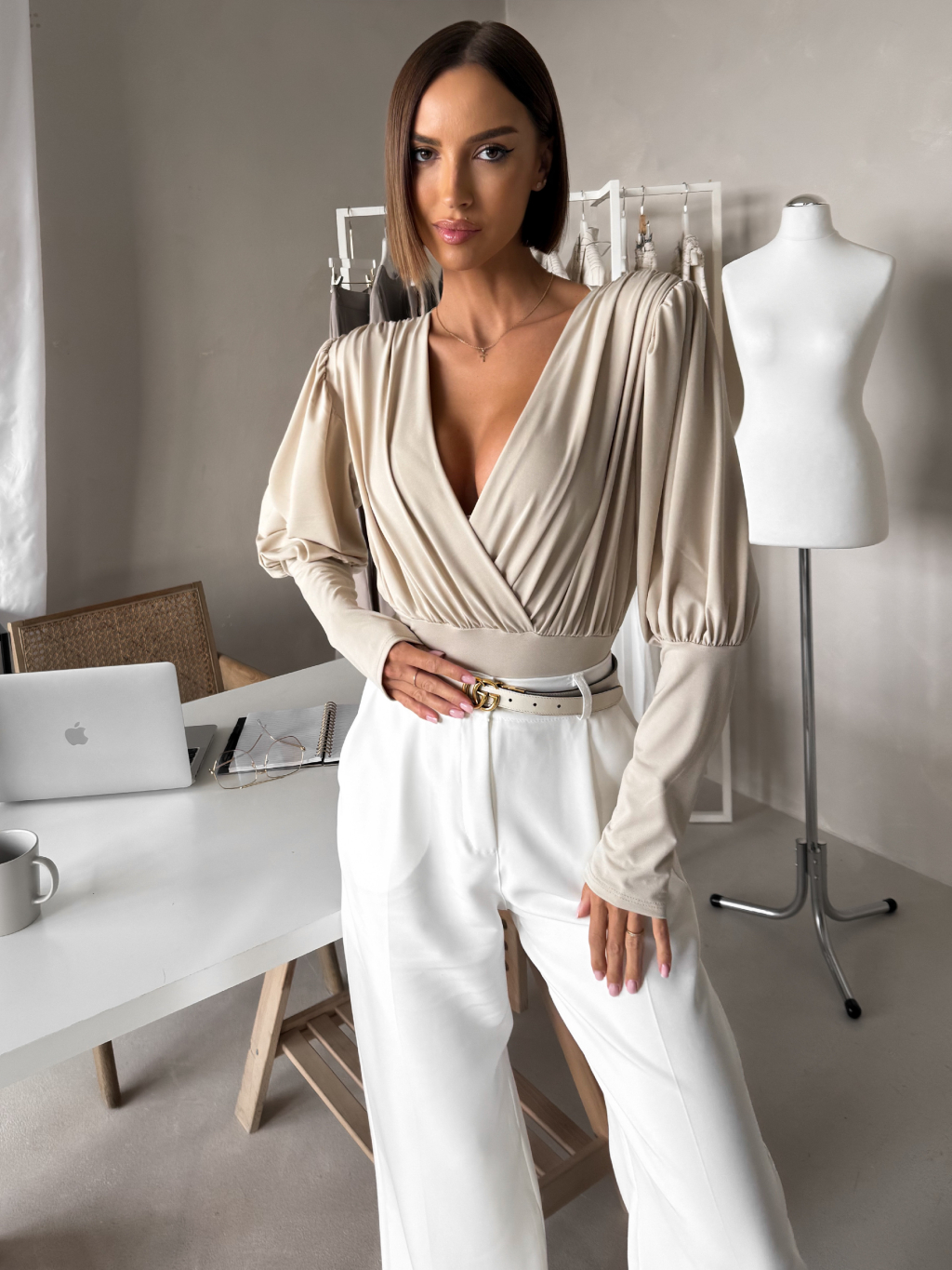 Béžové elegantní body KORBIX s výstřihem