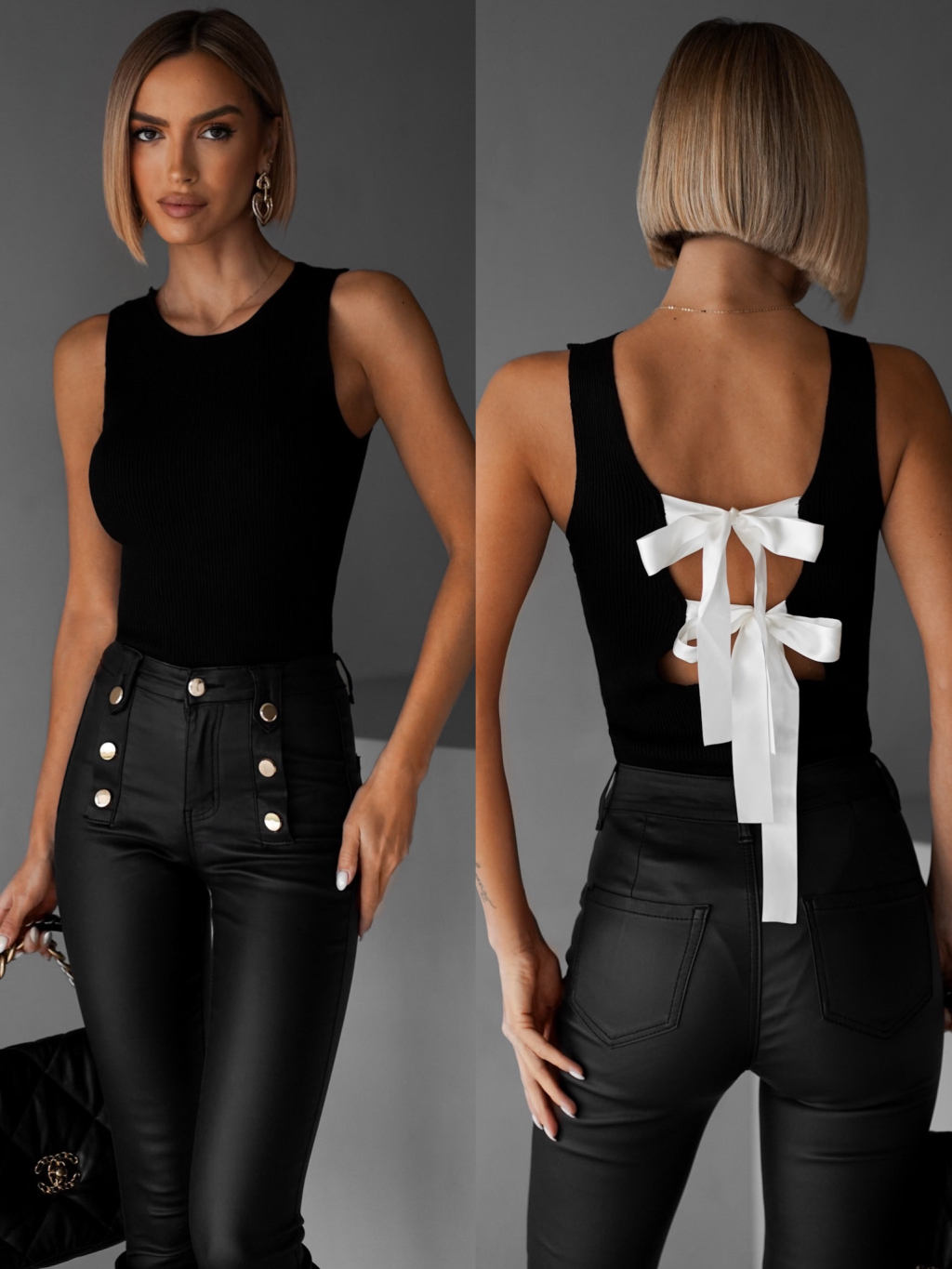Černé stylové body VUONG s mašlemi