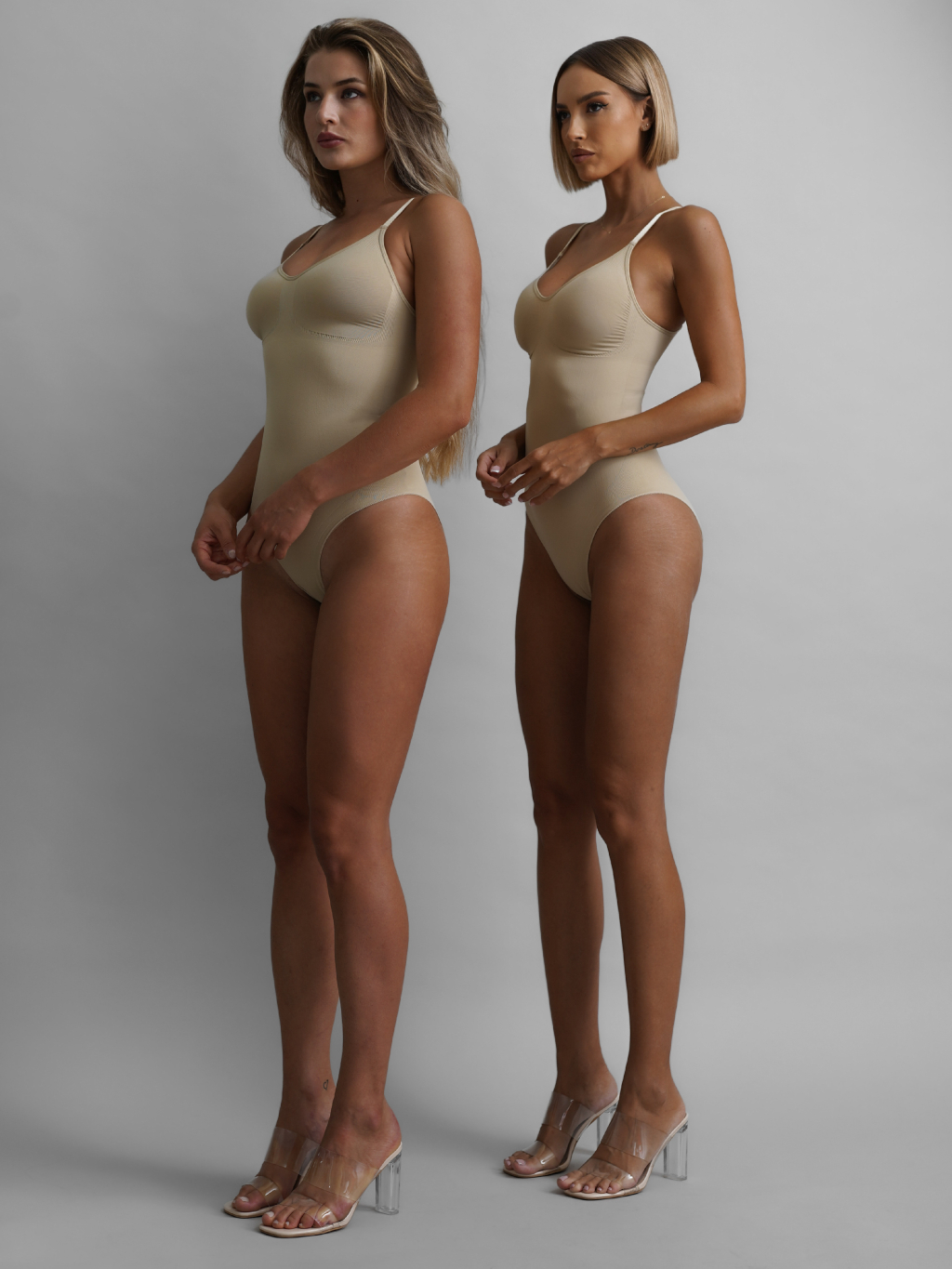 Béžové zeštíhlující stahovací body YONDREL s výstřihem