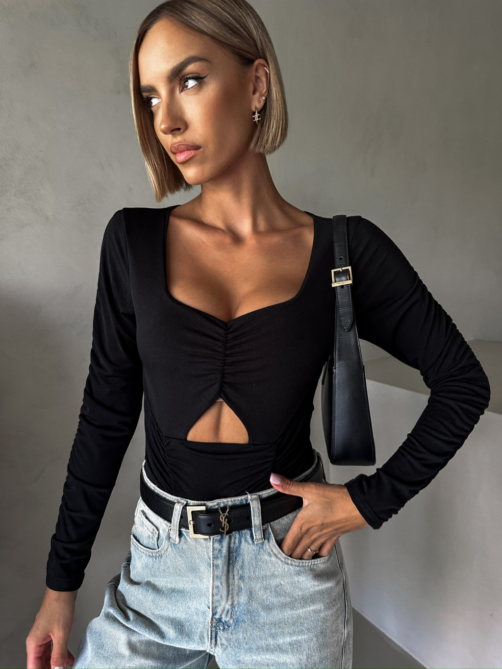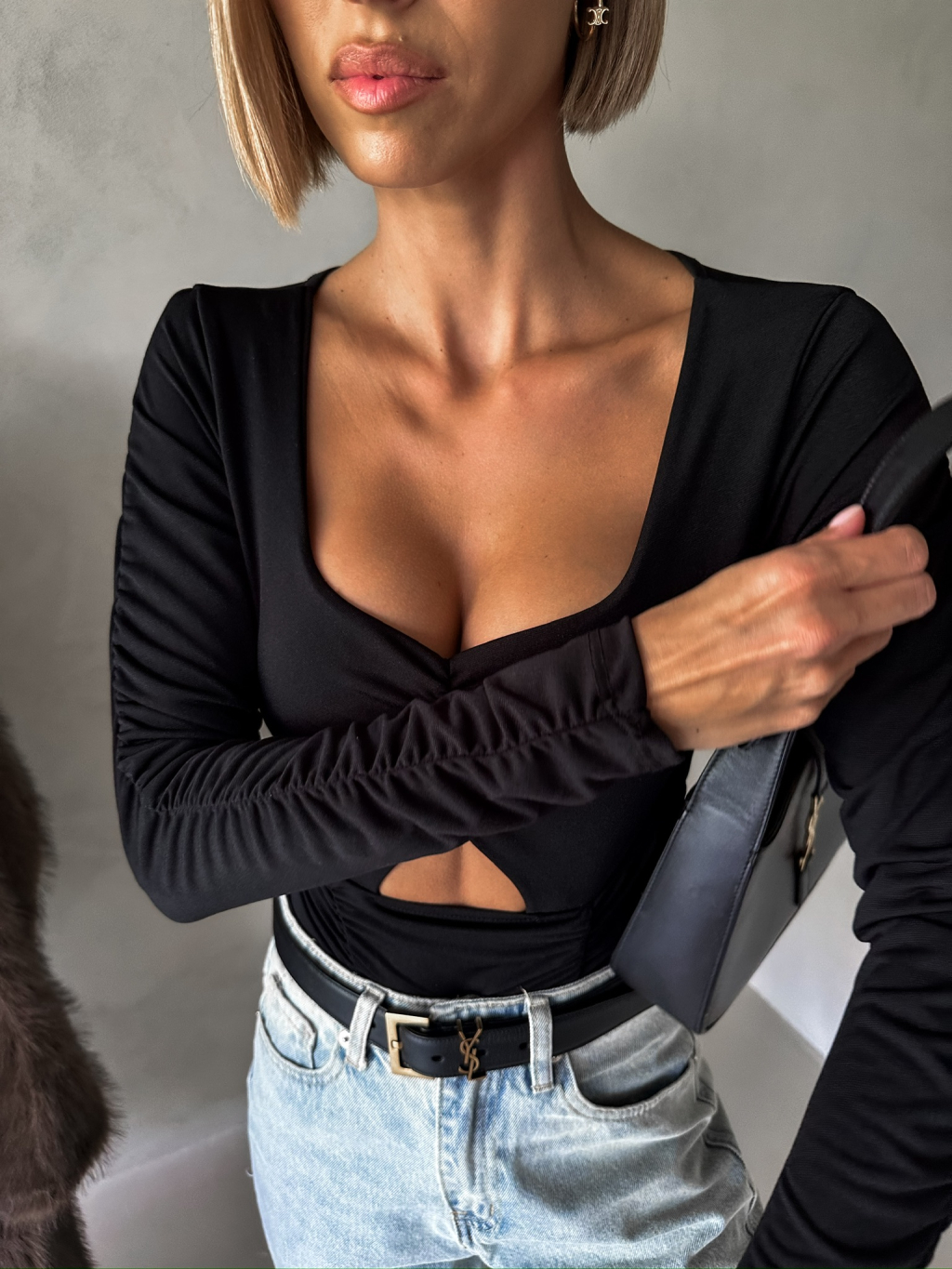 Černé elegantní body ECEM s výstřihem