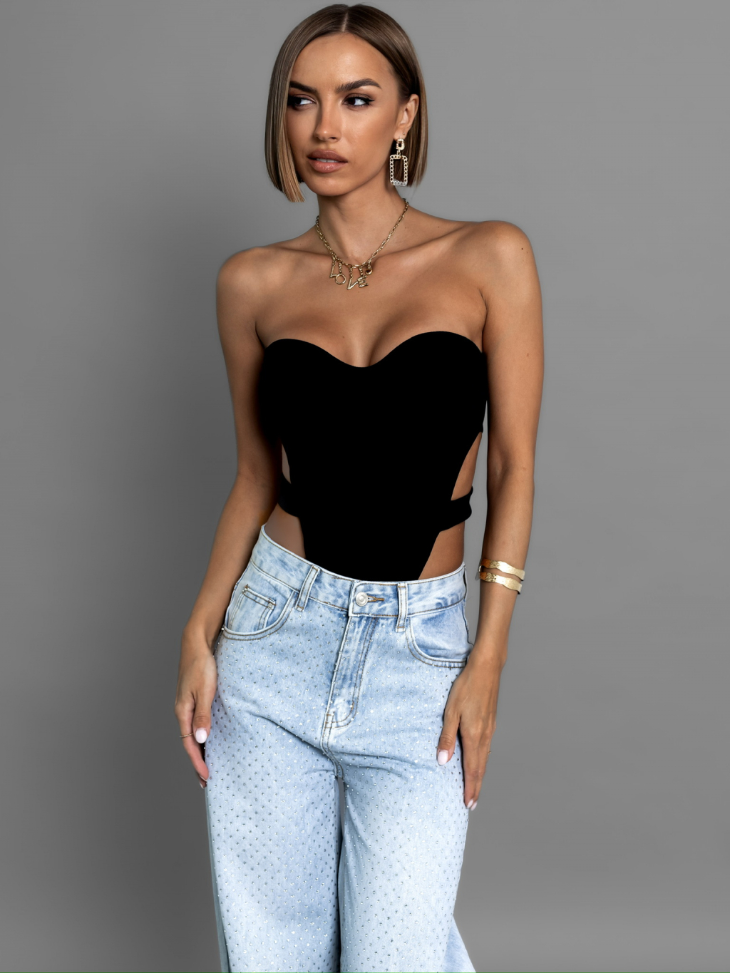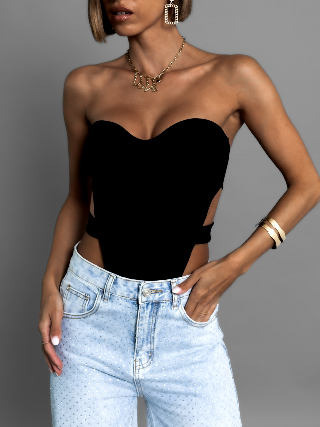 Černé sexy body OLAVET s průstřihy