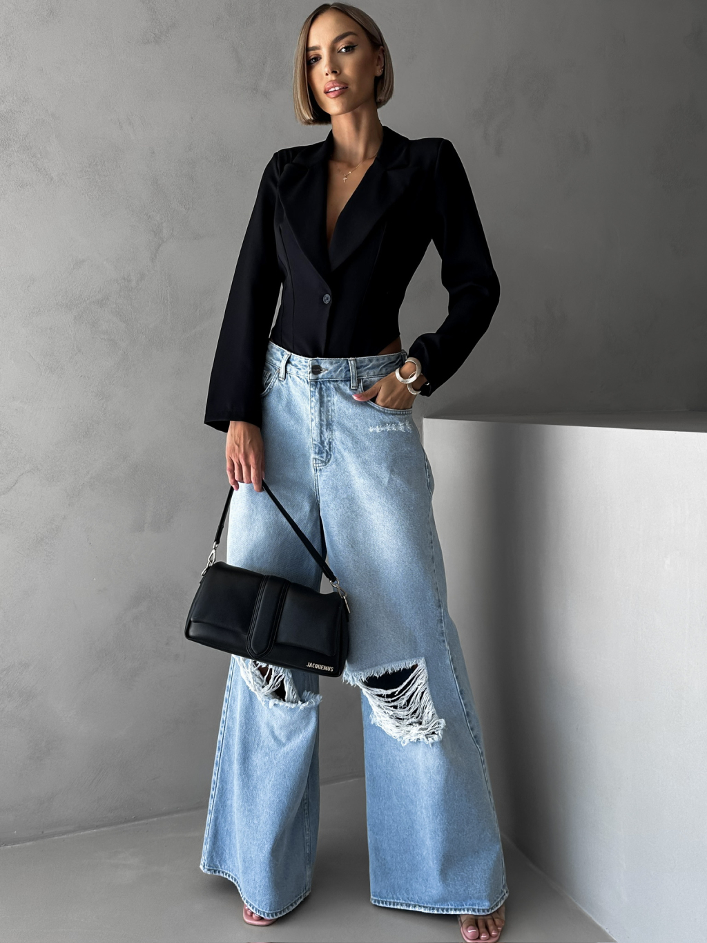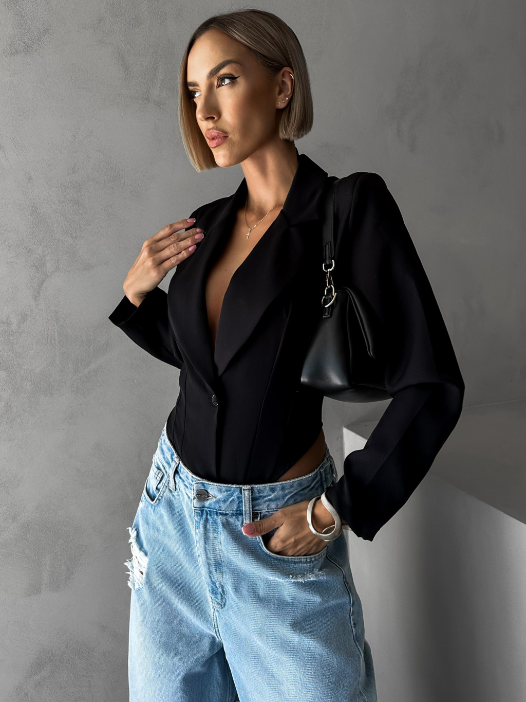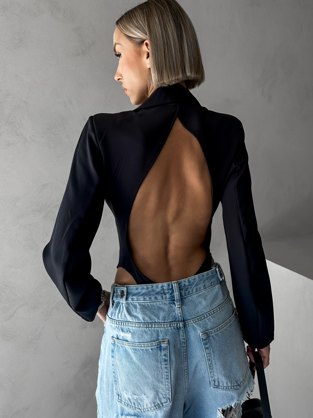 Černé stylové sakové body ALEXEJ s průstřihem na zádech