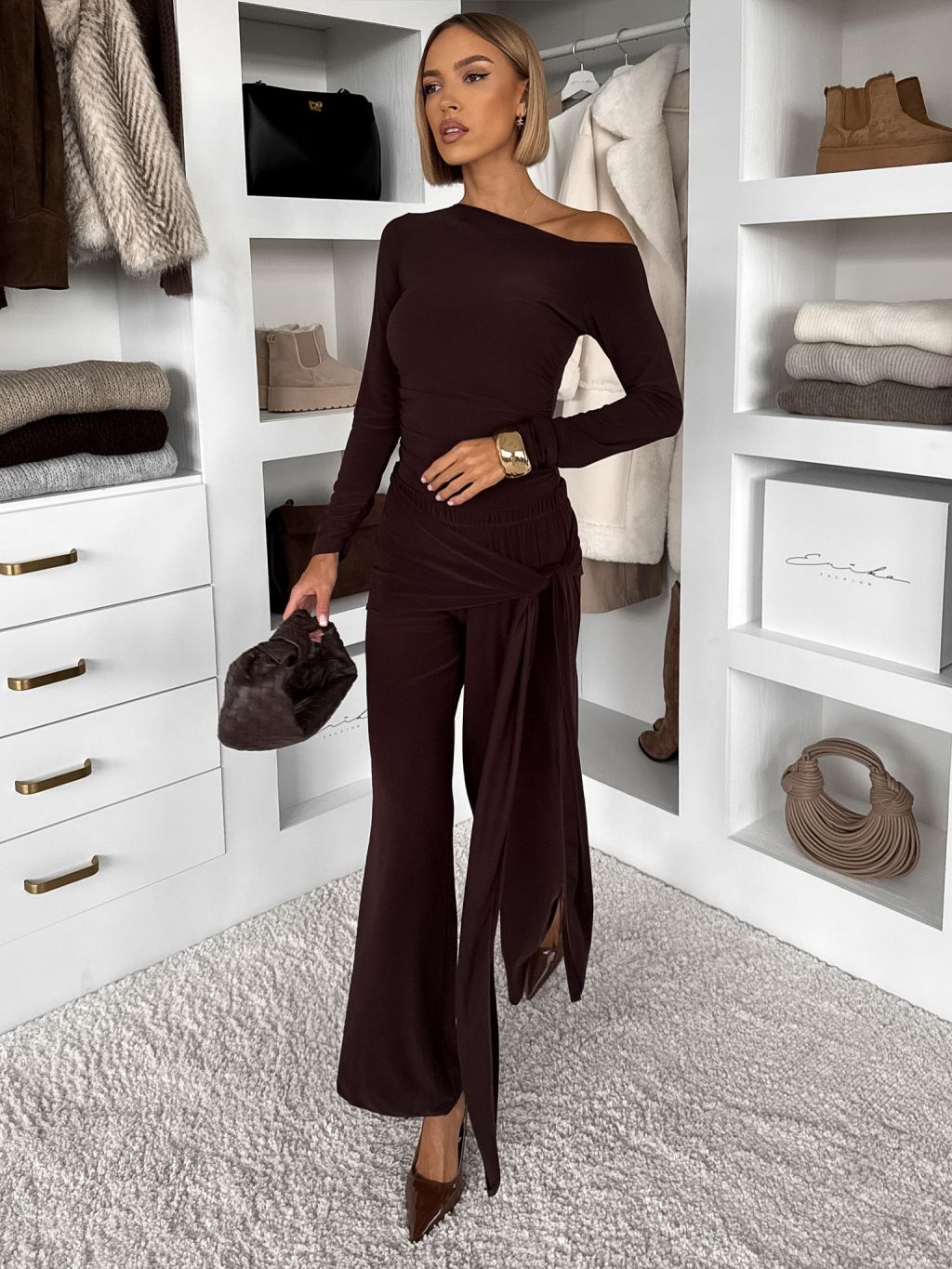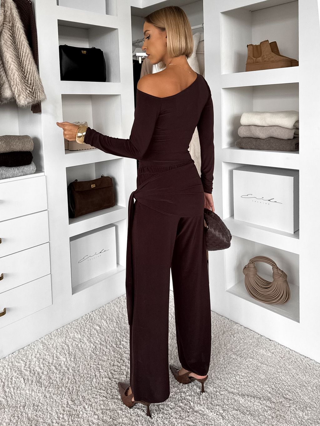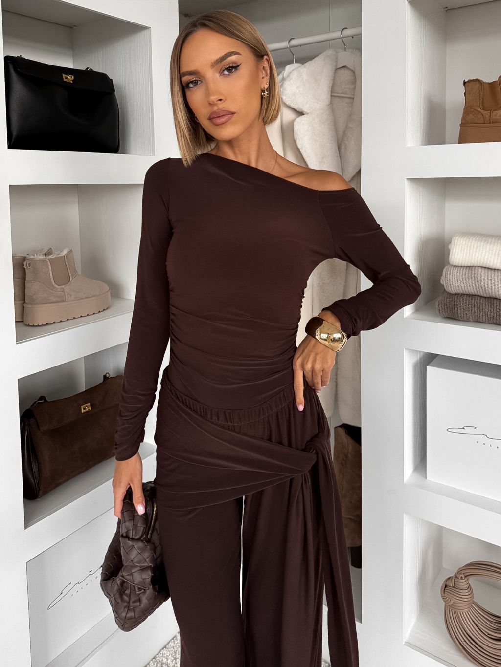 Tmavě hnědé elastické body LORAVA s dlouhým rukávem