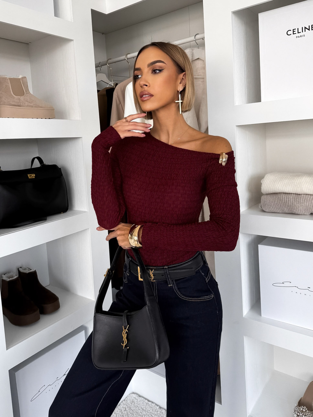 Vínové elegantní body JELVORA s dlouhým rukávem