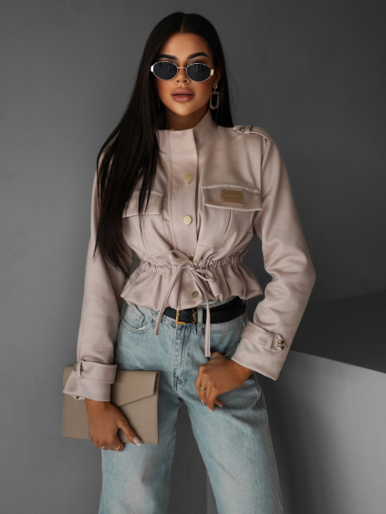 Hnědá elegantní bunda MORIVEN s velkými květy