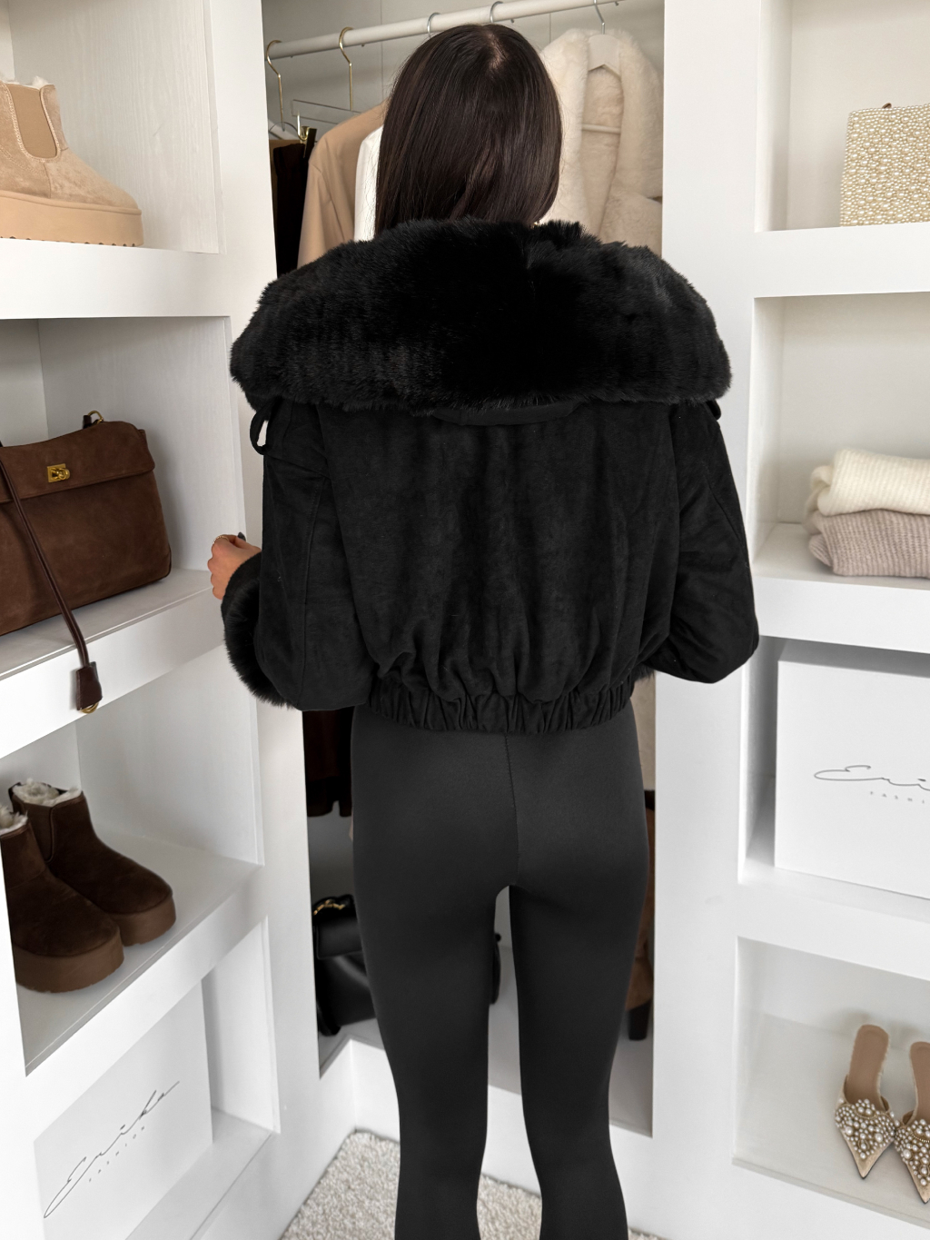 Černá stylová krátká bunda HEXUMI s kožíškem