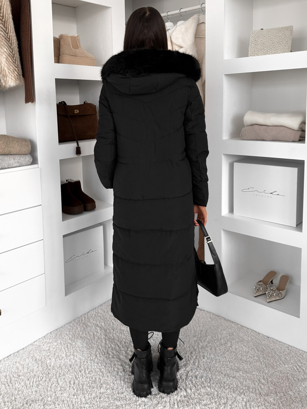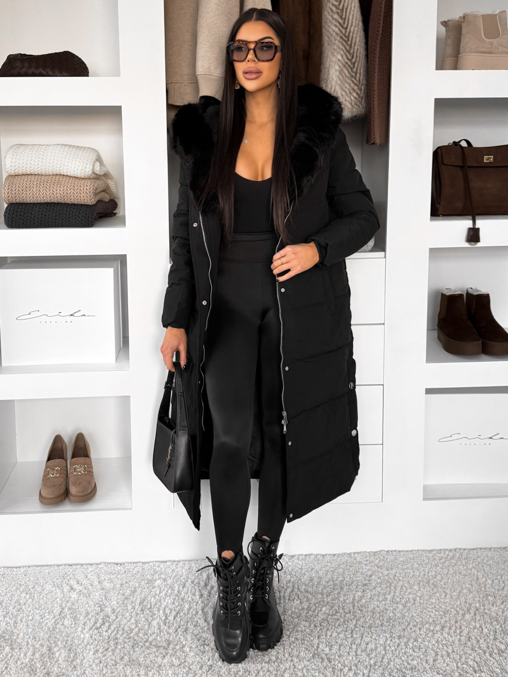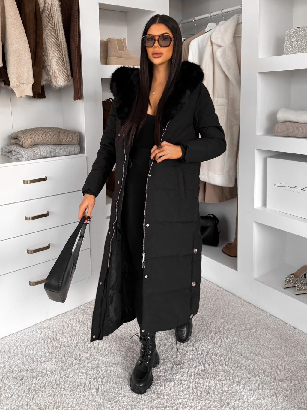 Černý dlouhý zimní bunda kabát LUMIYA