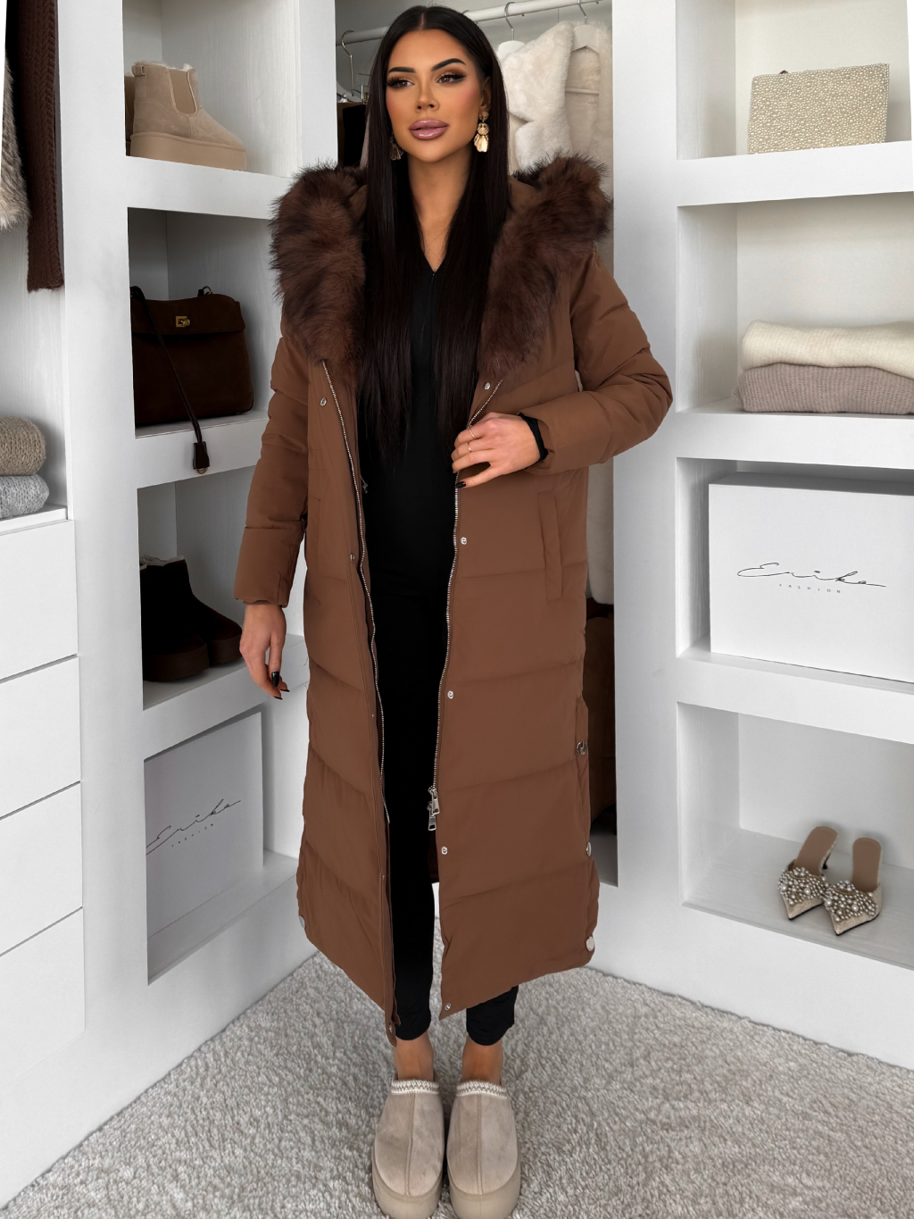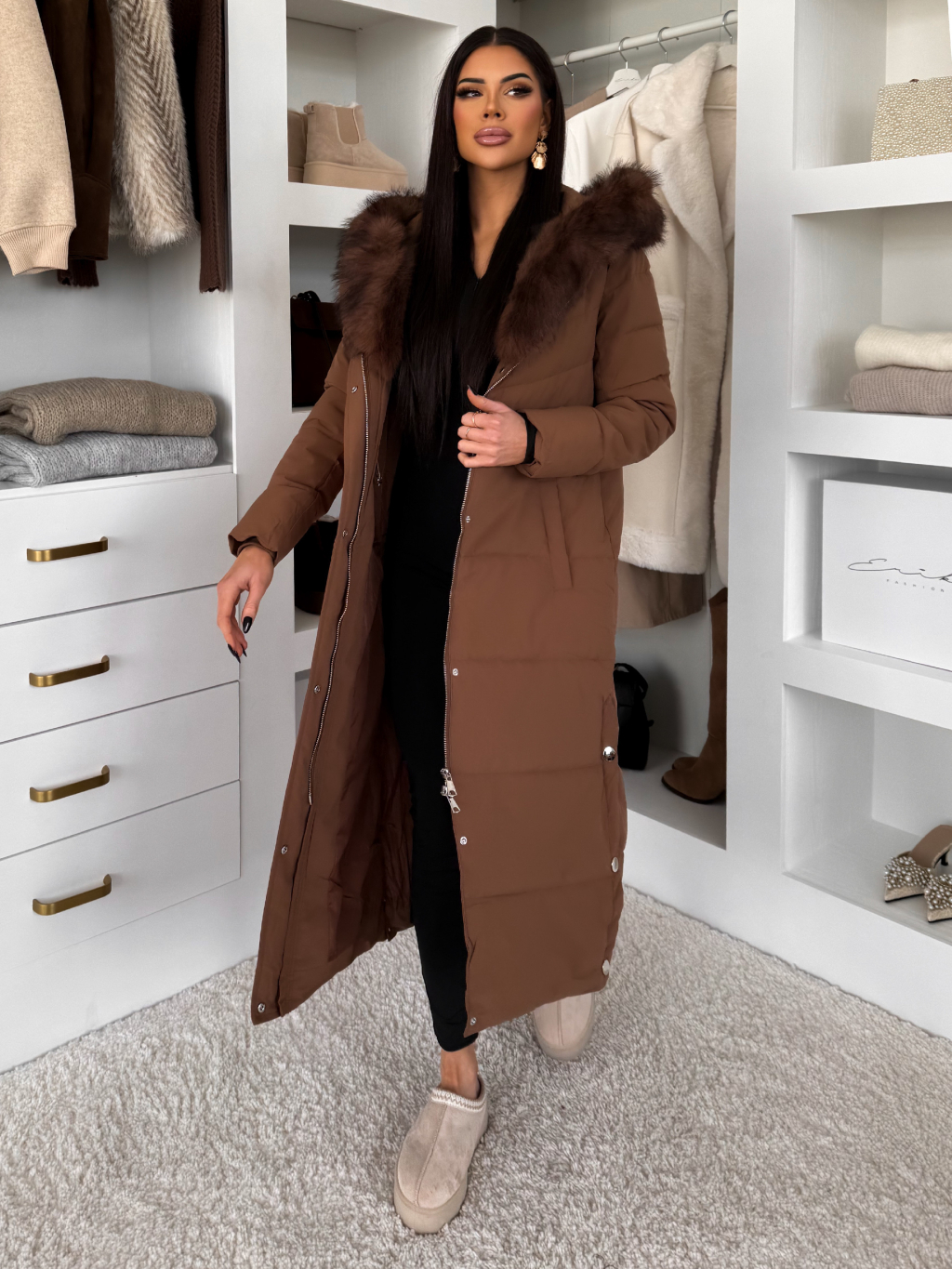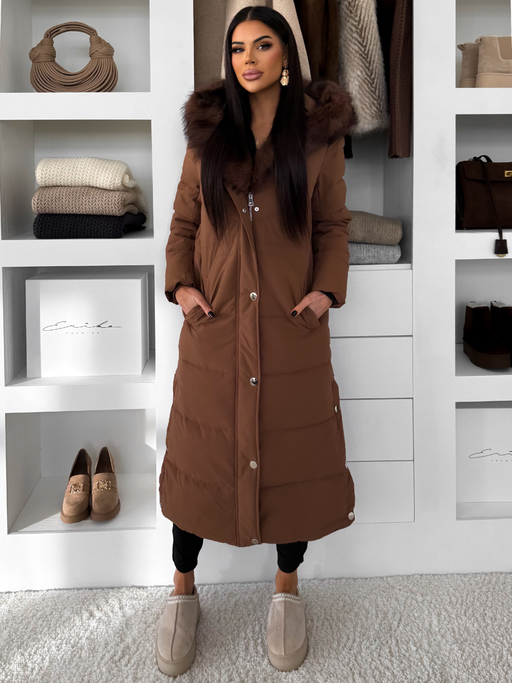 Hnědý dlouhý zimní kabát bunda LUMIYA