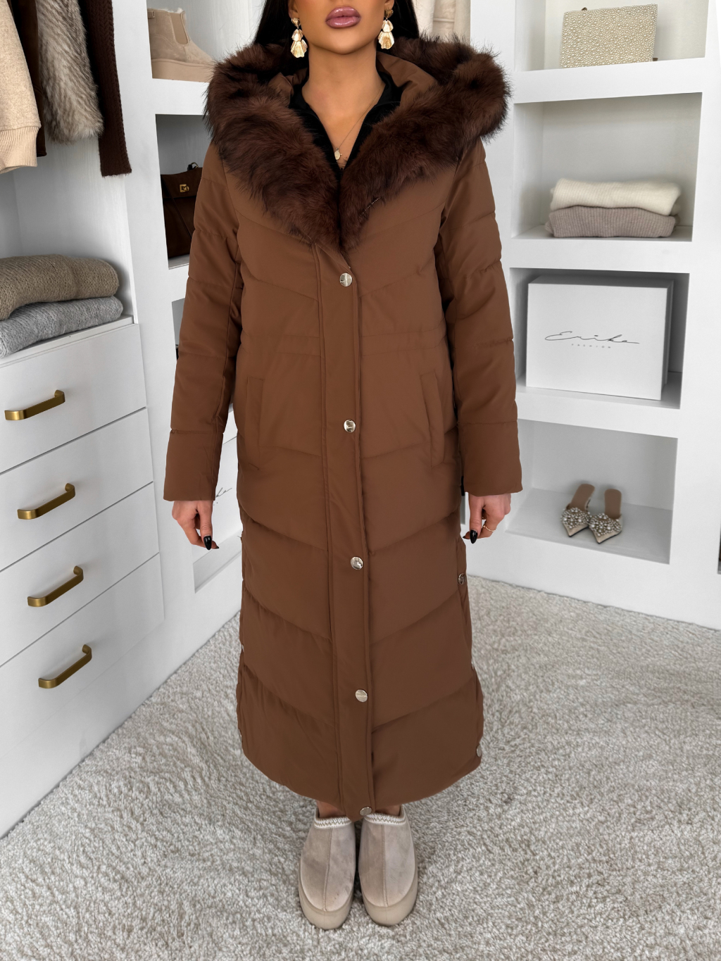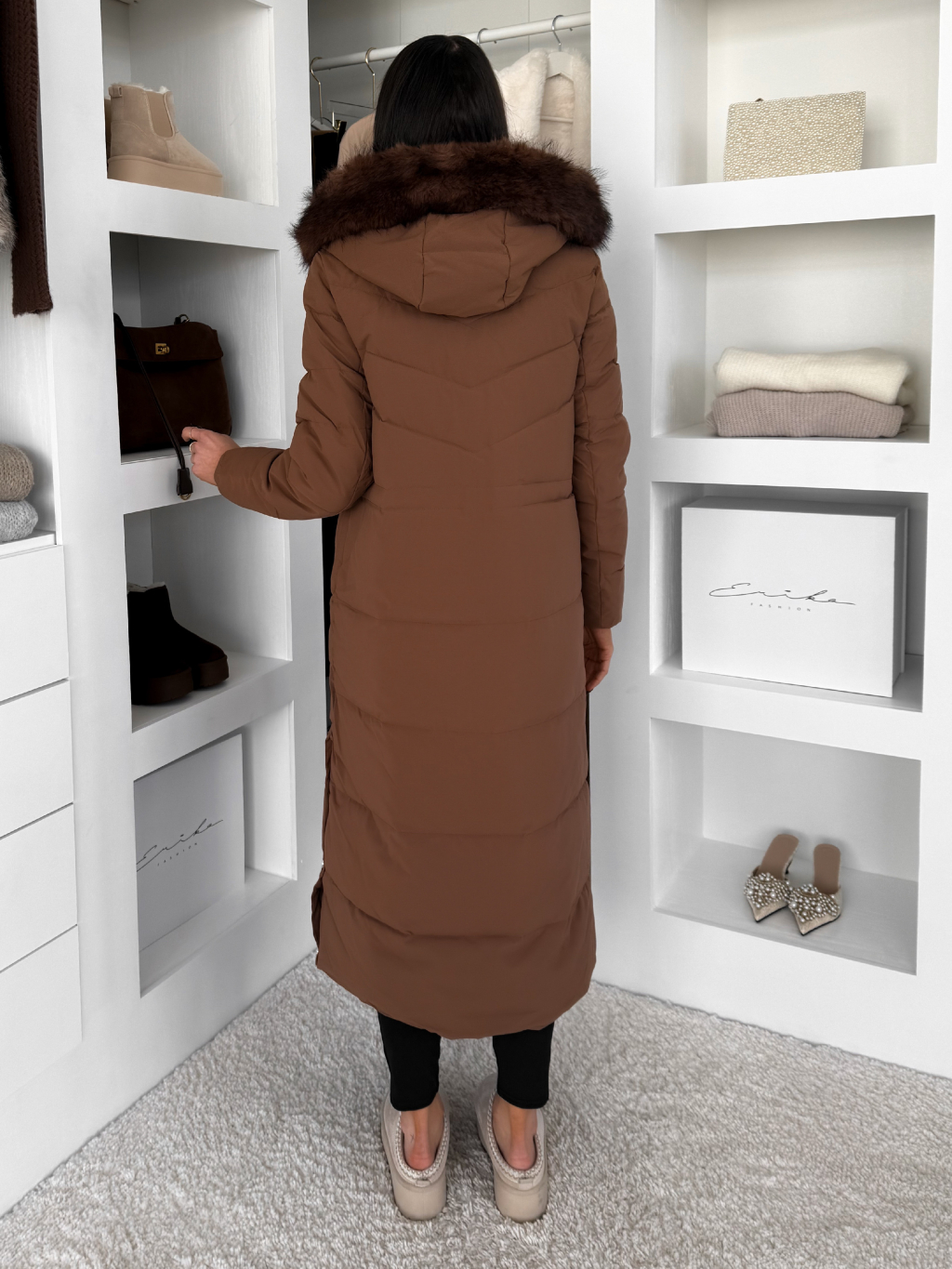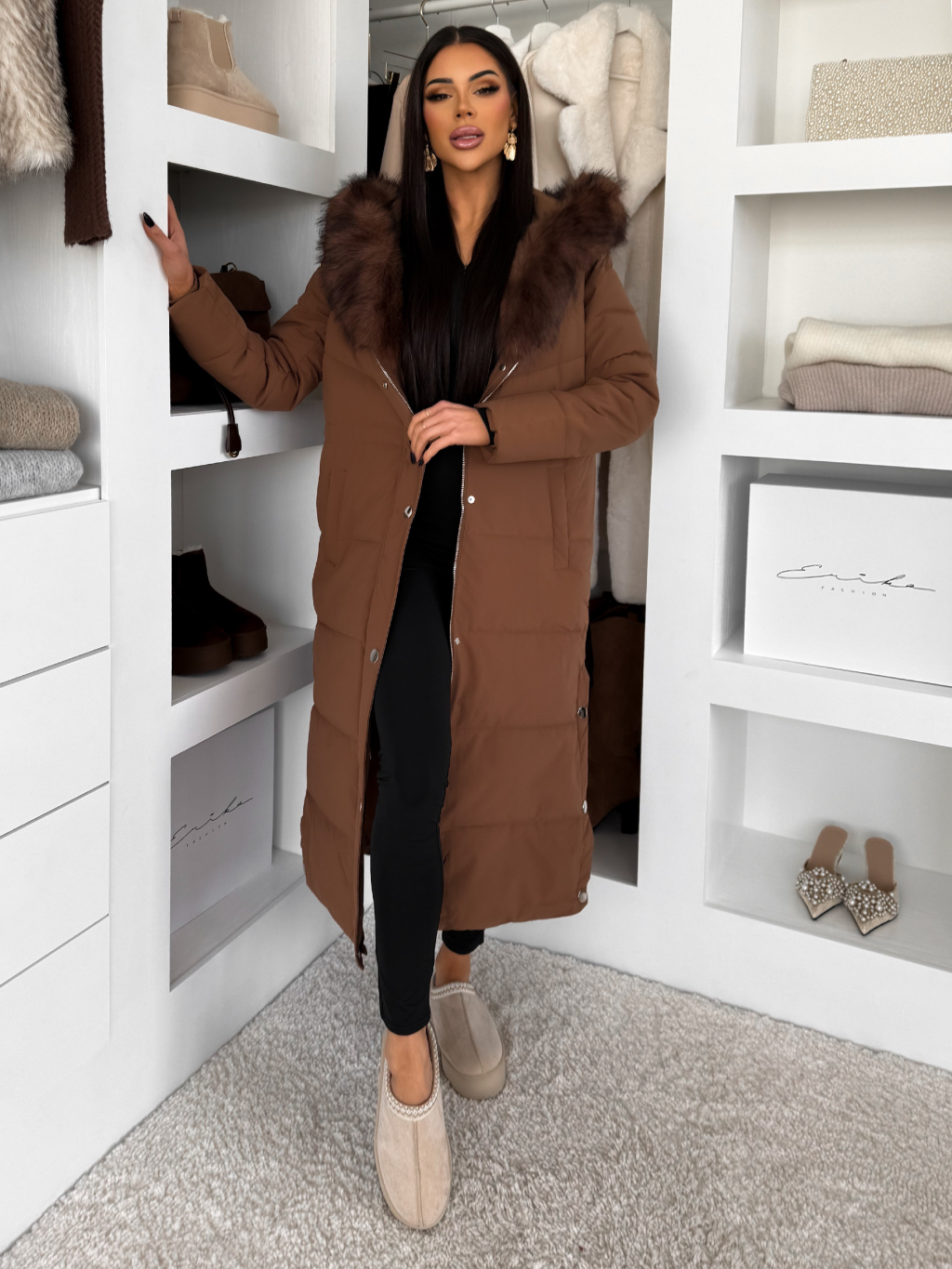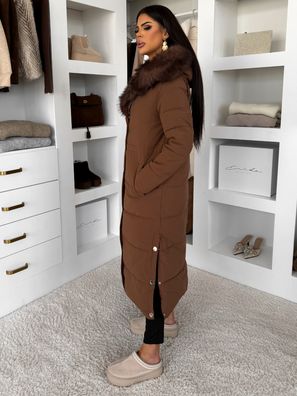 Hnědý dlouhý zimní kabát bunda LUMIYA
