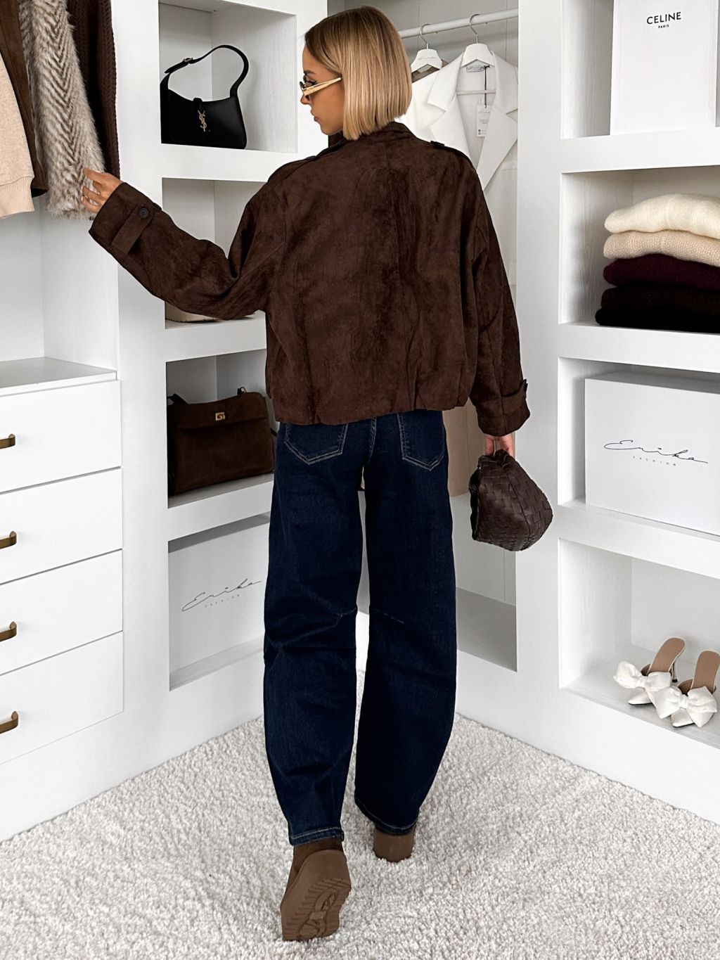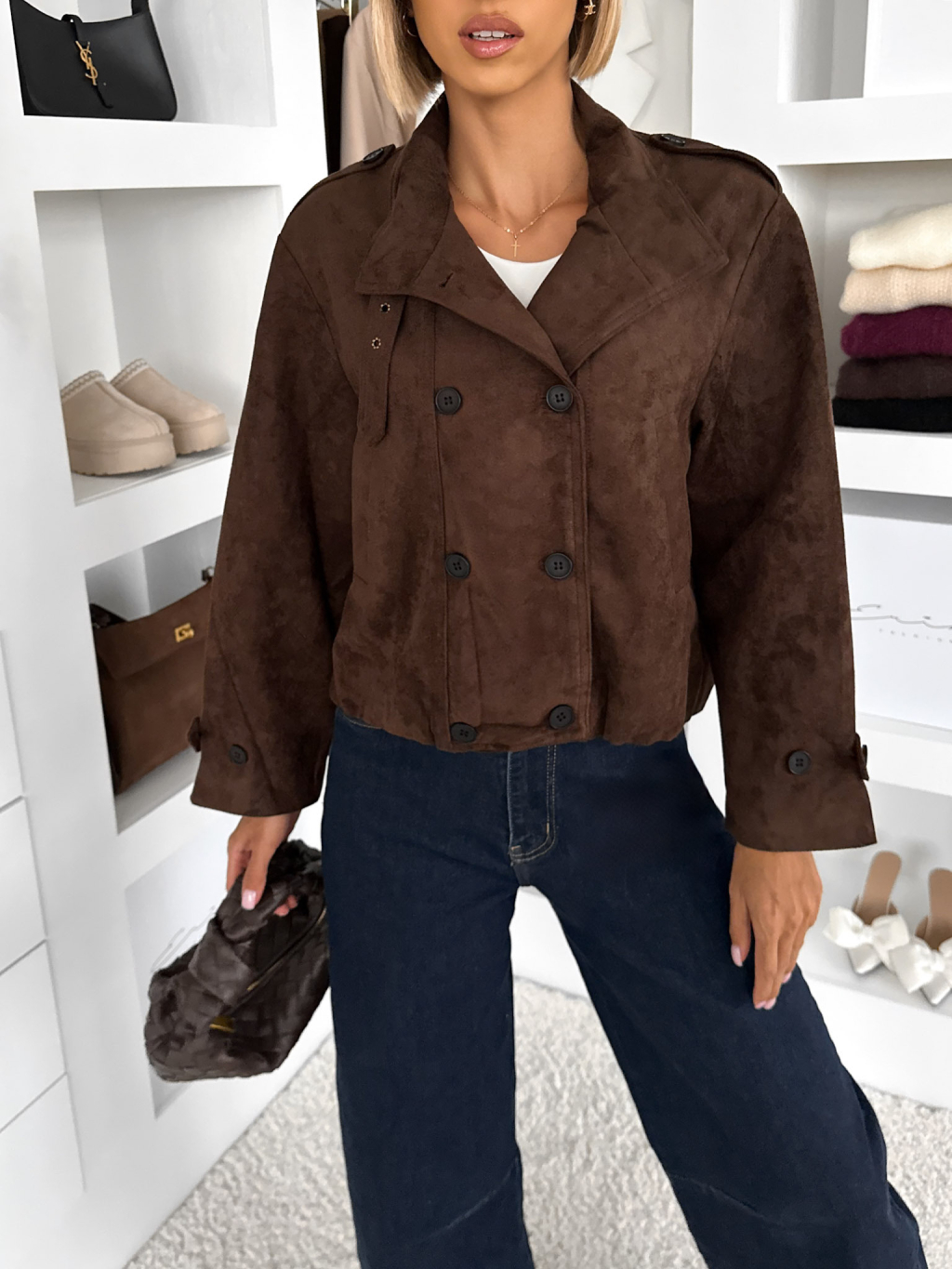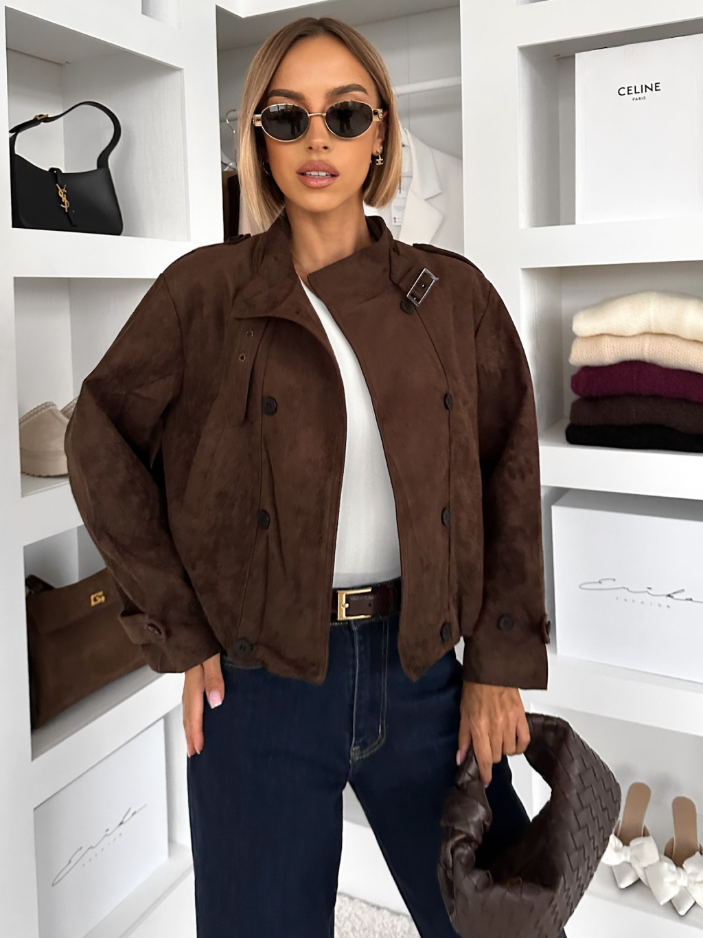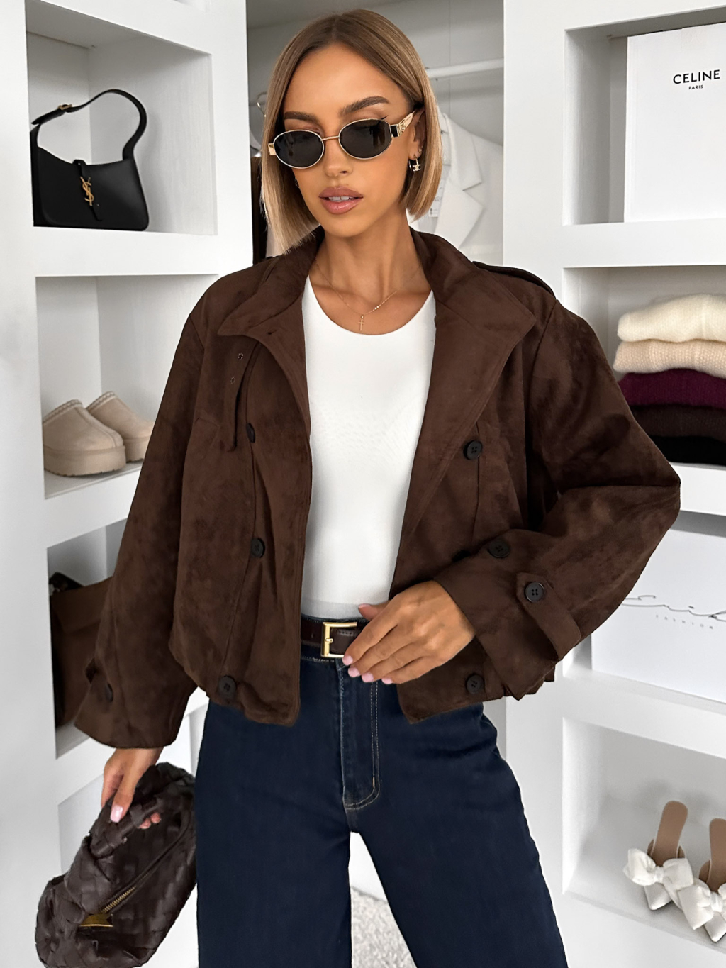 Tmavě hnědý semišový krátký kabátek RAVEANI