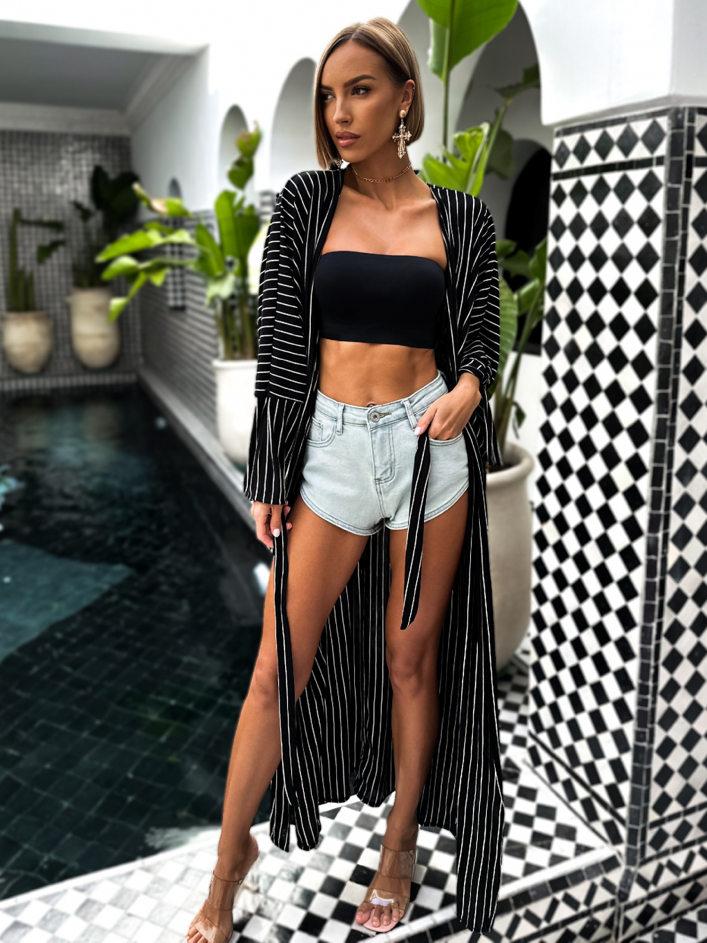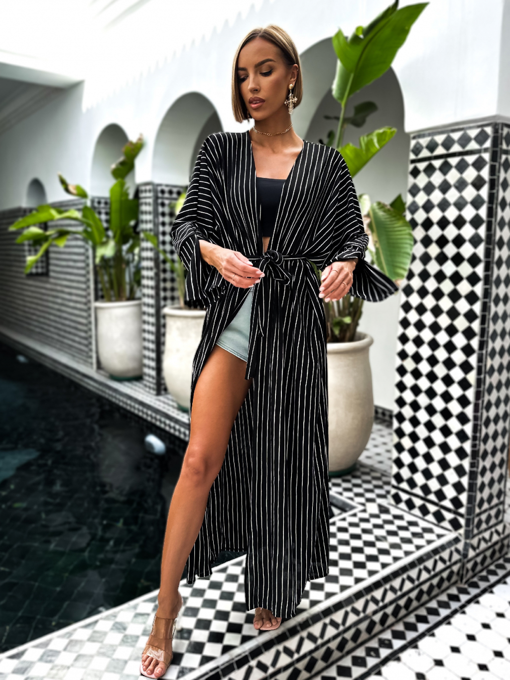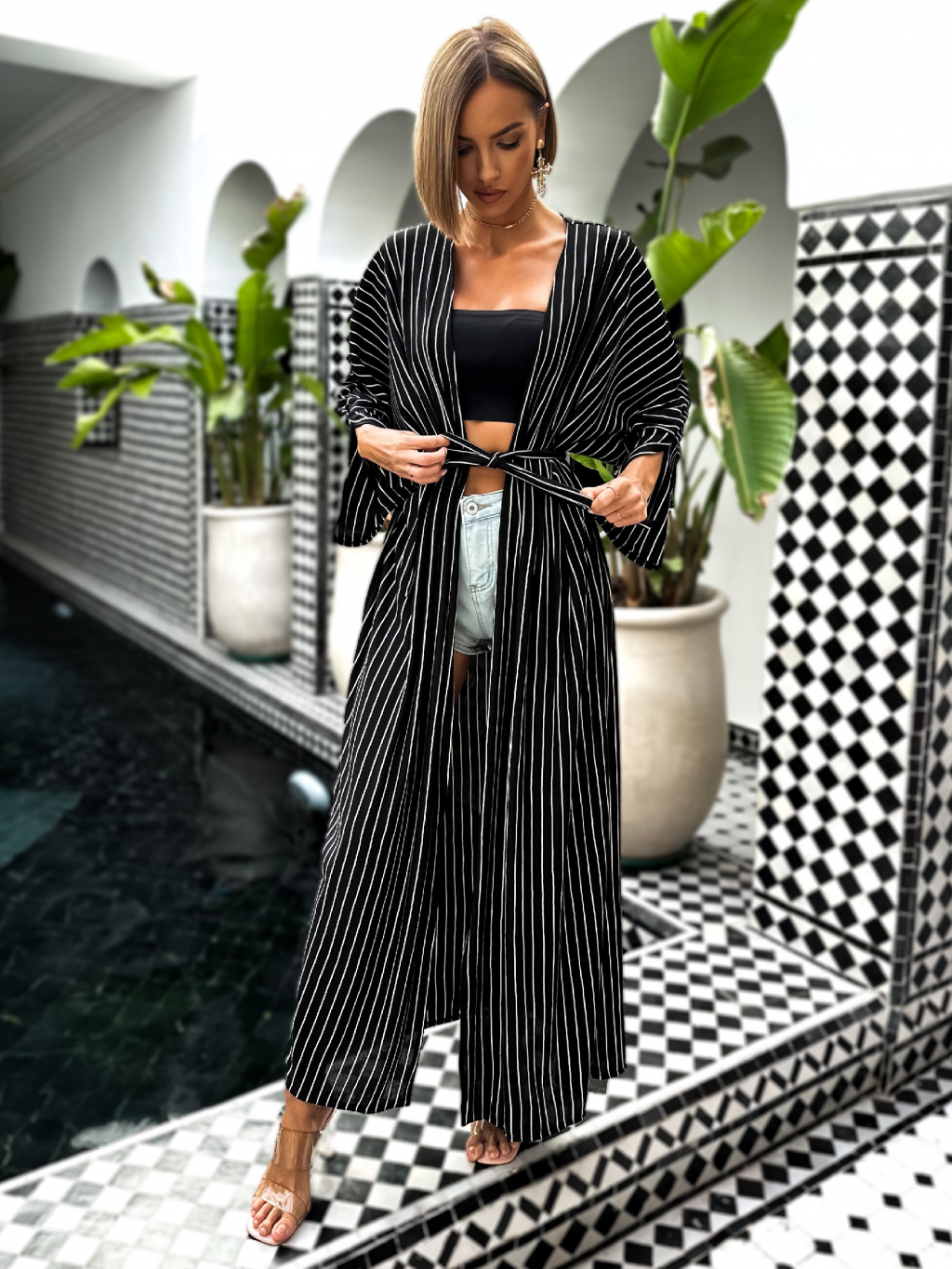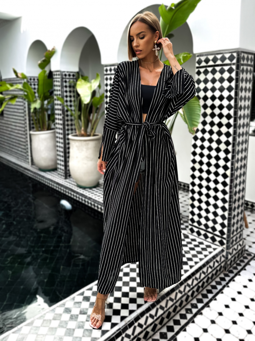 Černý dlouhý cardigan IZAURAL s páskem