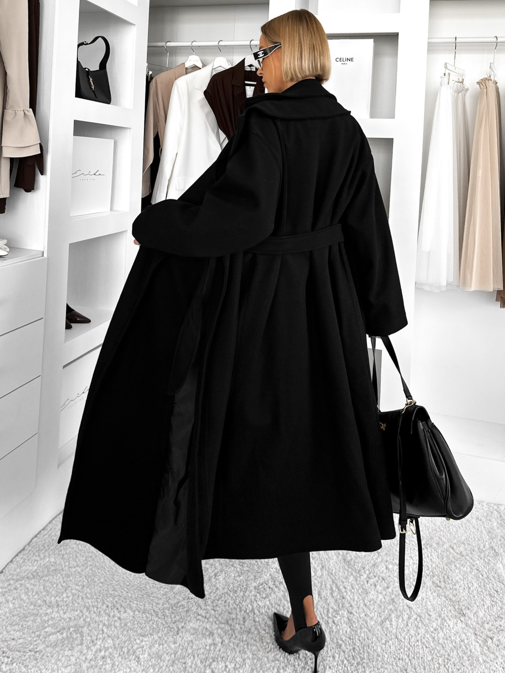 Černý dlouhý flaušový kabát KALDEM