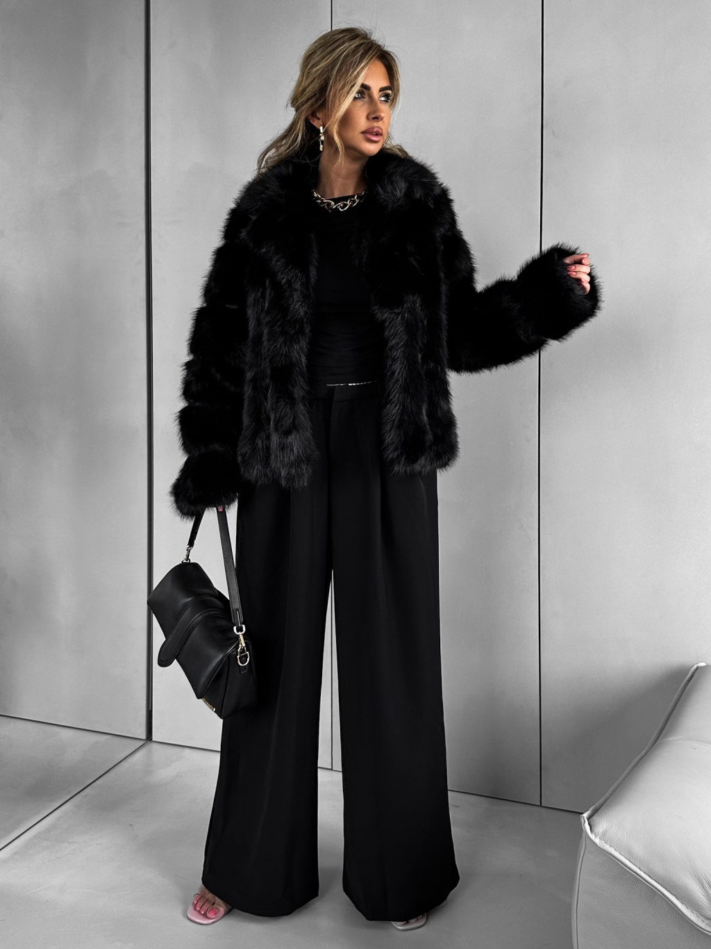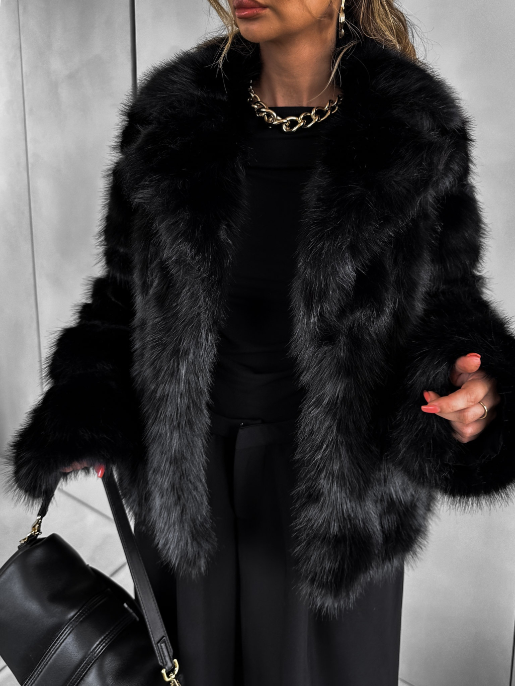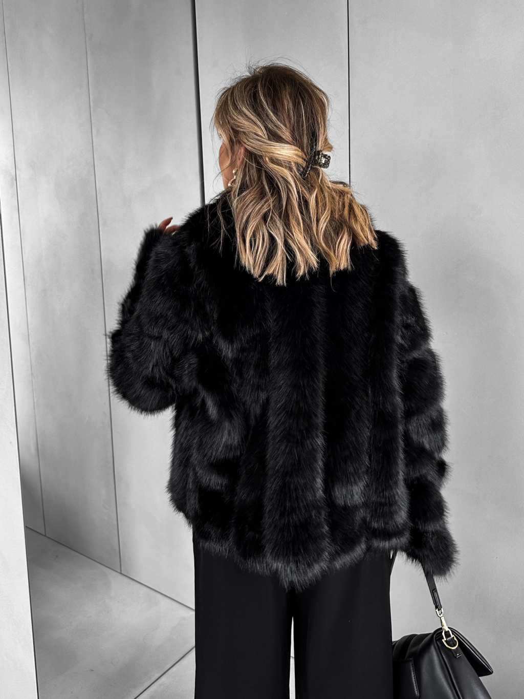 Černý krátký faux fur kožešinový kabátek NOMIR