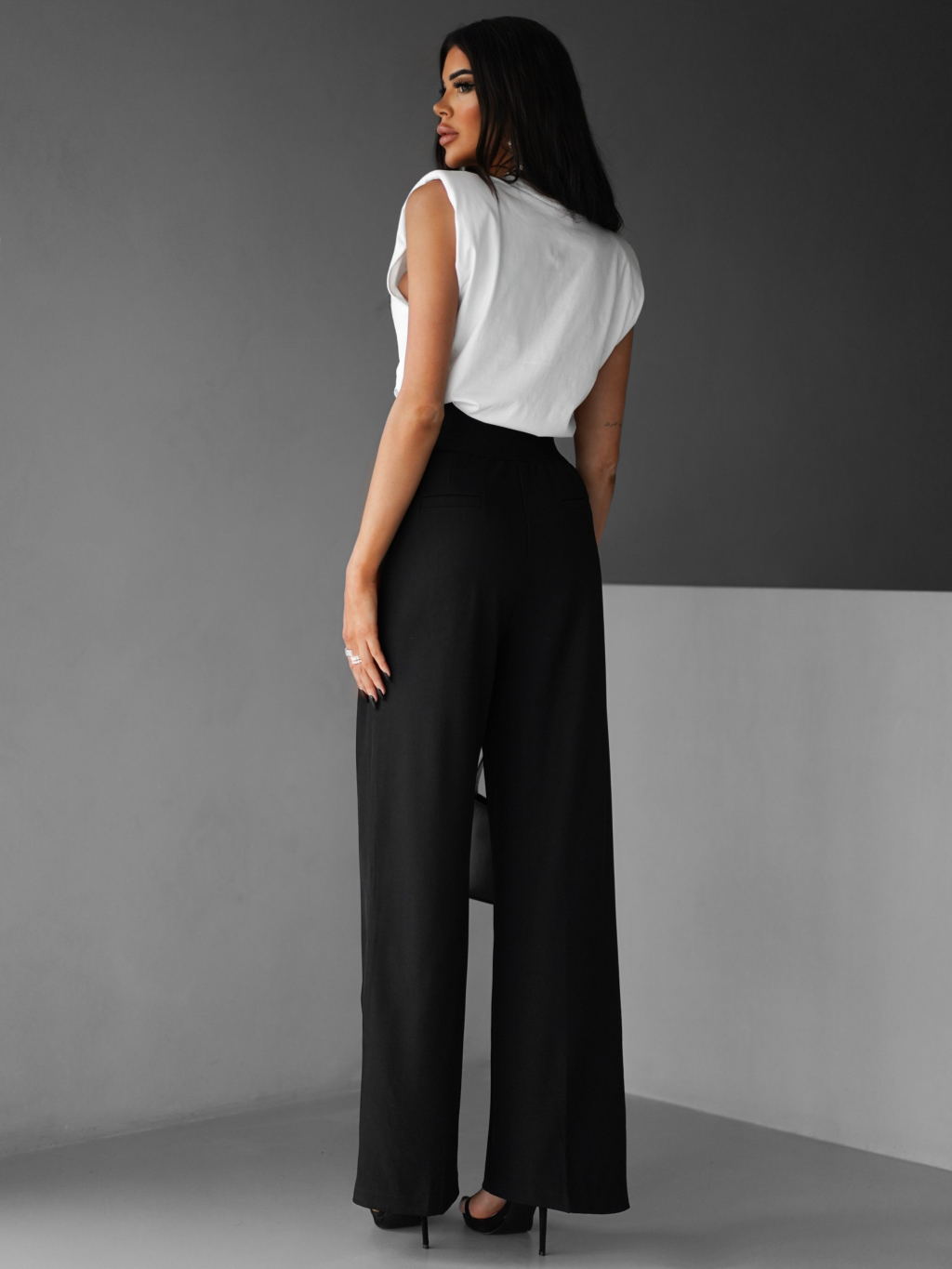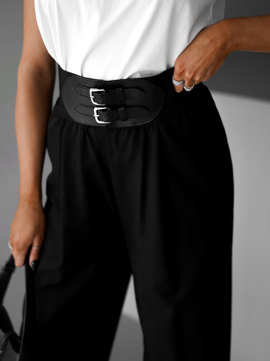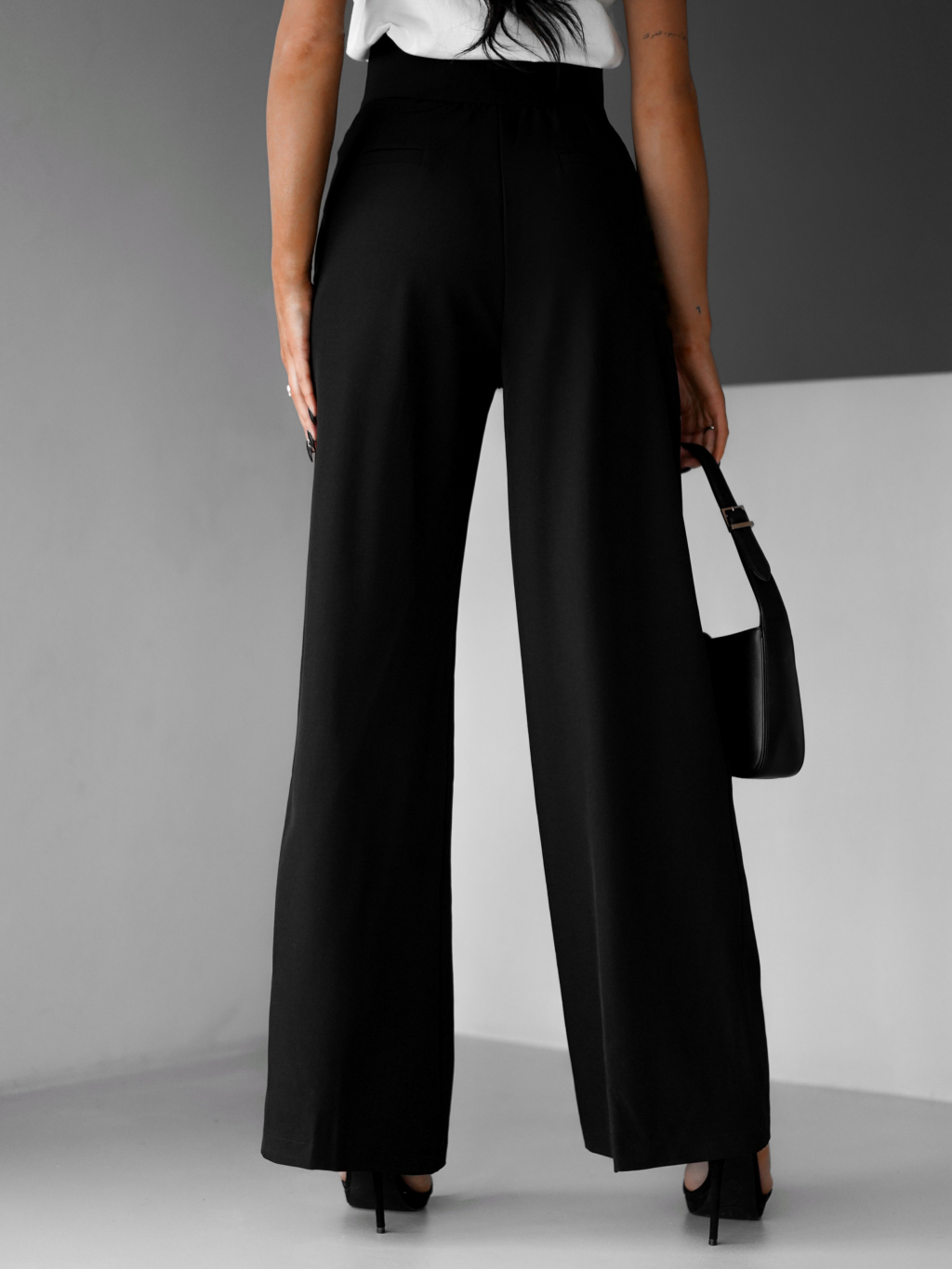 Černé široké elegantní kalhoty DONATELLA s páskem