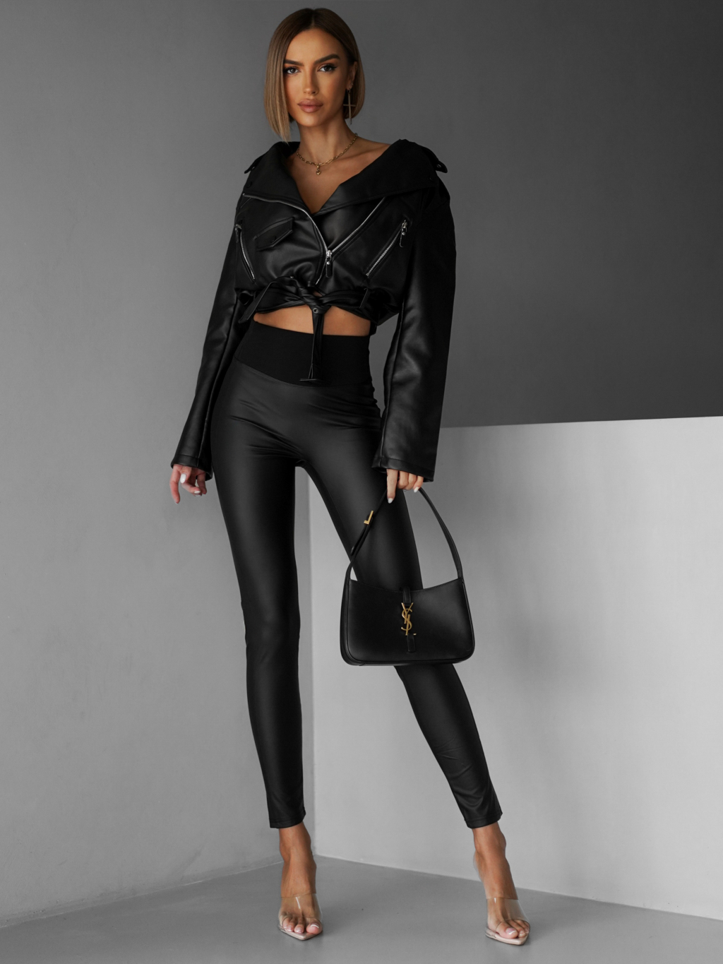 Černé koženkové basic legíny TAMLIN