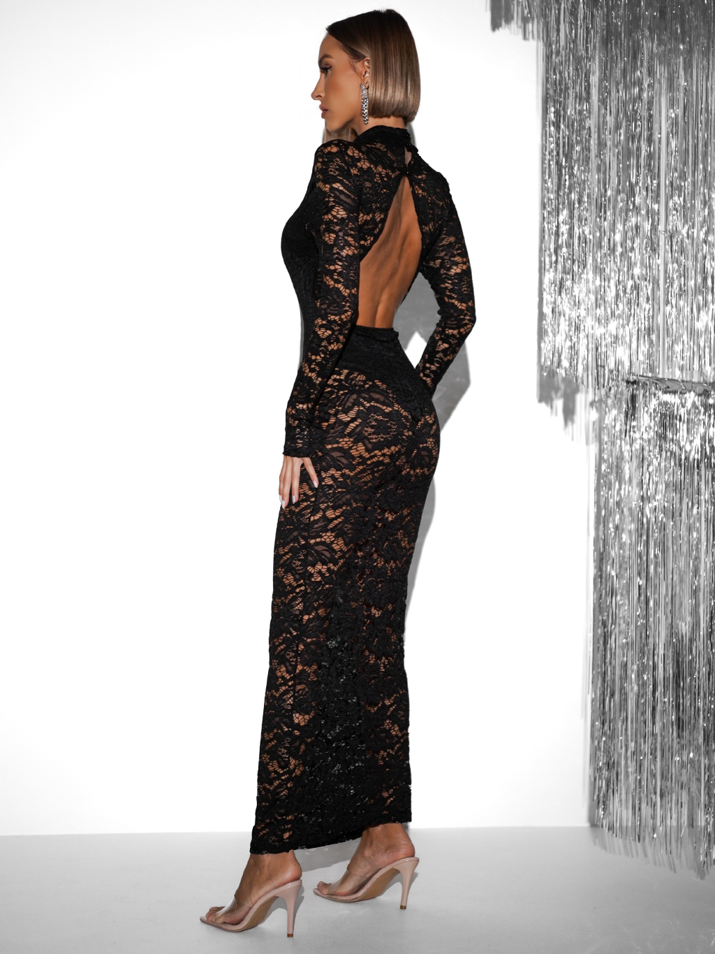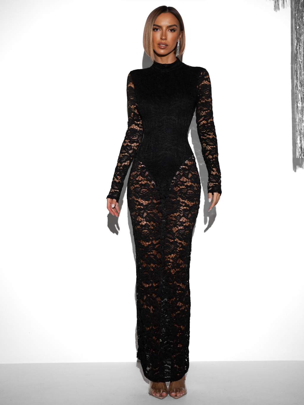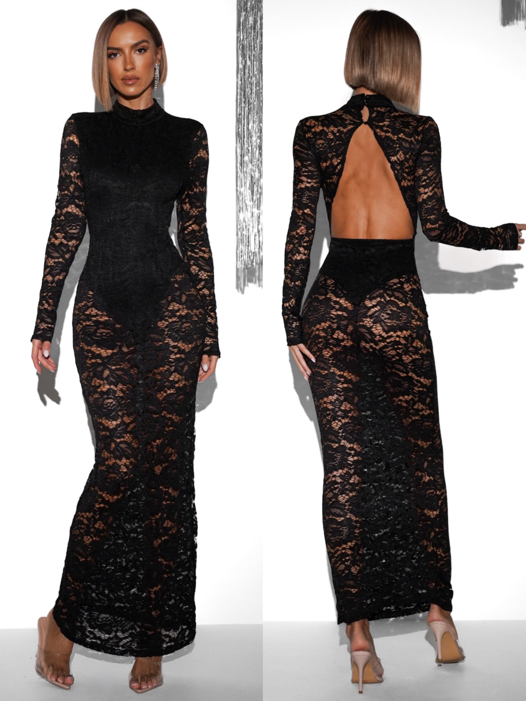 Černé dlouhé večerní krajkované šaty DUARTY s body