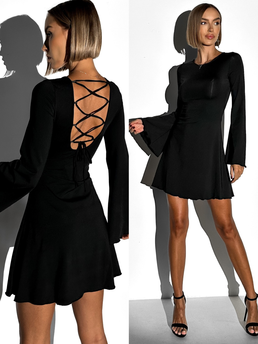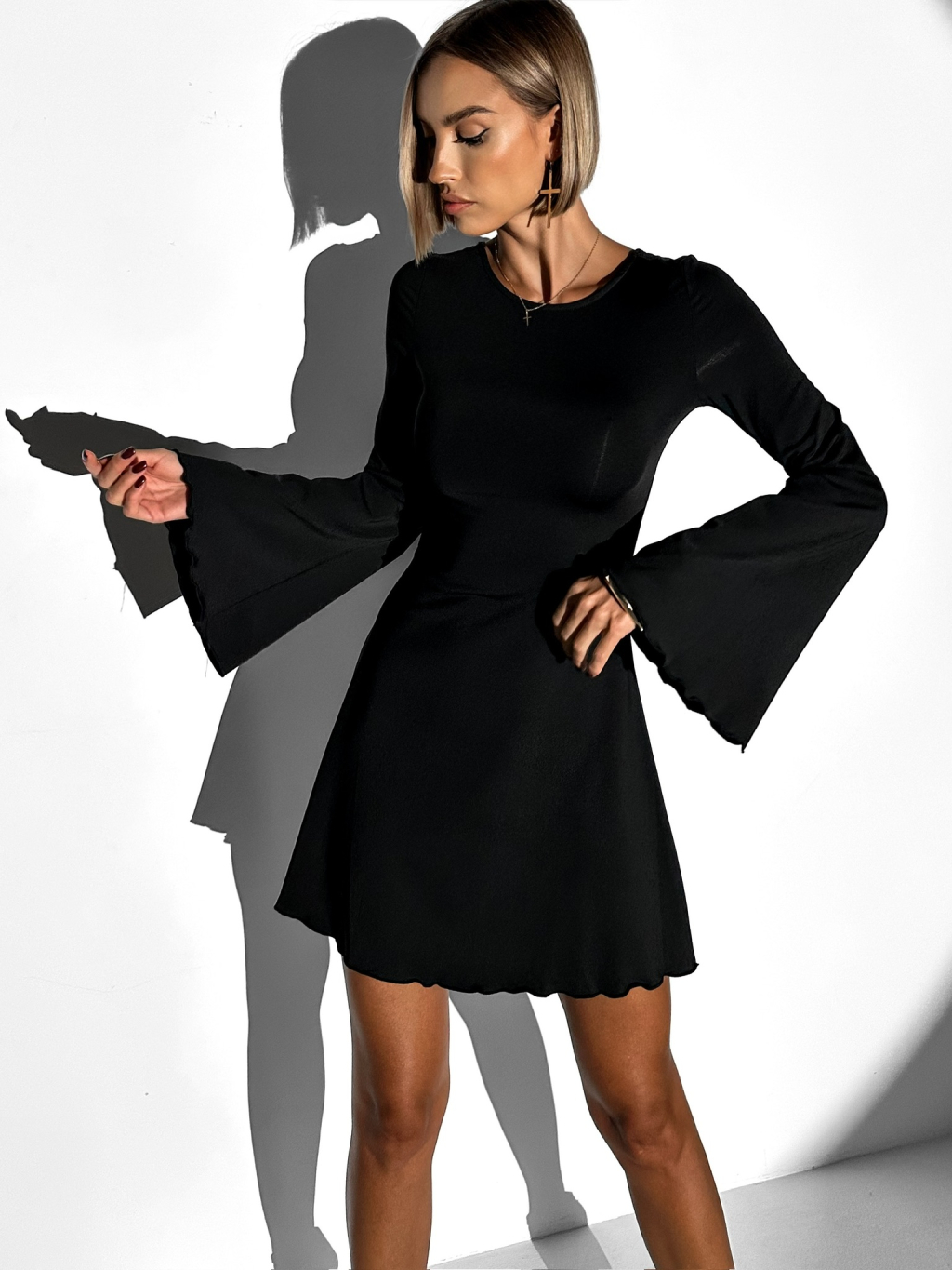 Černé áčkové šaty AGNETA s dlouhým rukávem