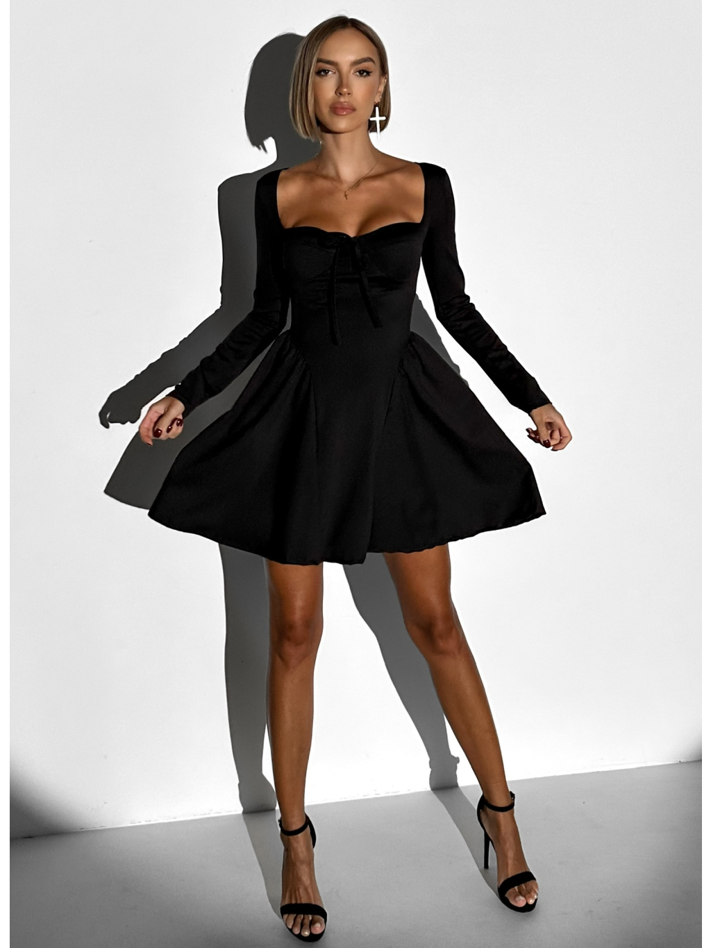 Černé áčkové šaty VANGIE s dlouhým rukávem