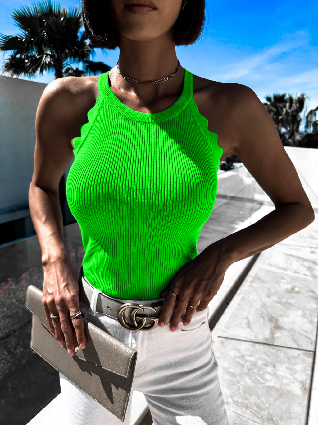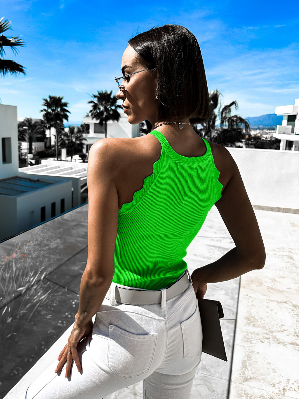 Světle zelený žebrovaný top SHIG