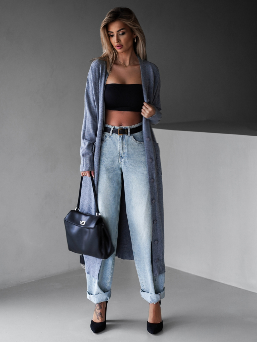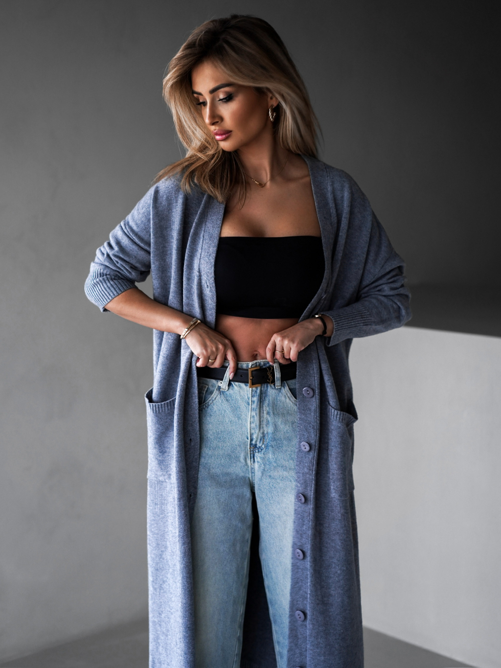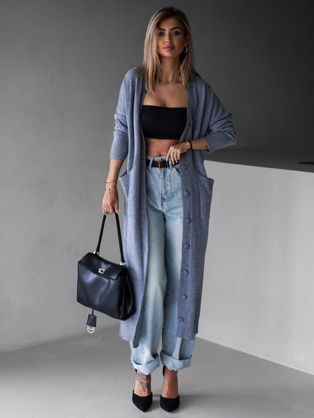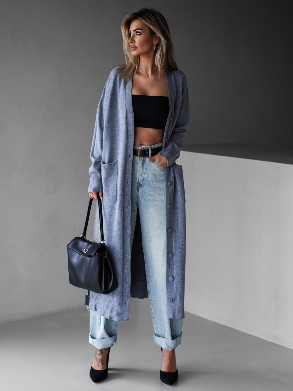 Šedý dlouhý stylový cardigan ORONAL na knoflíky