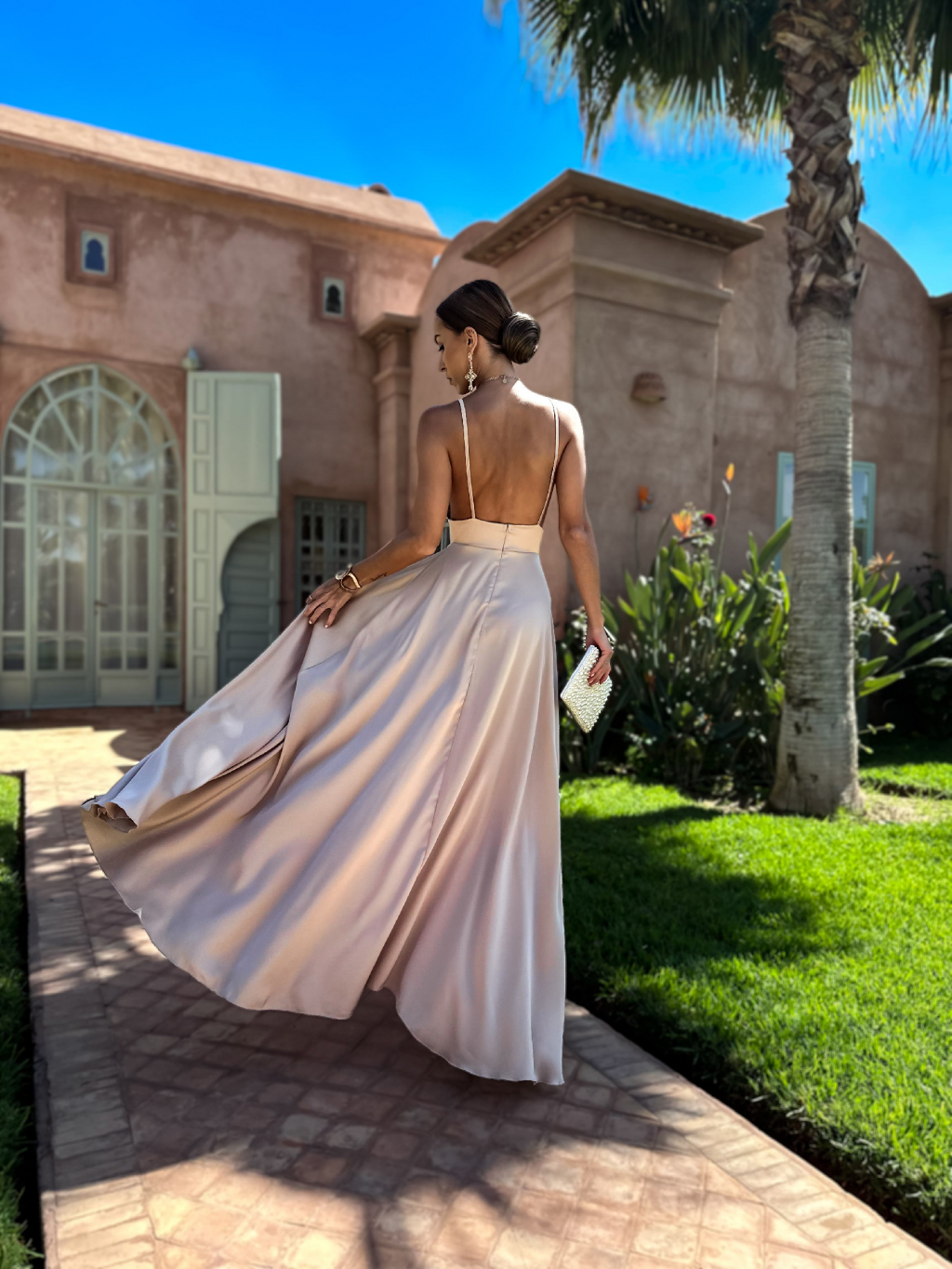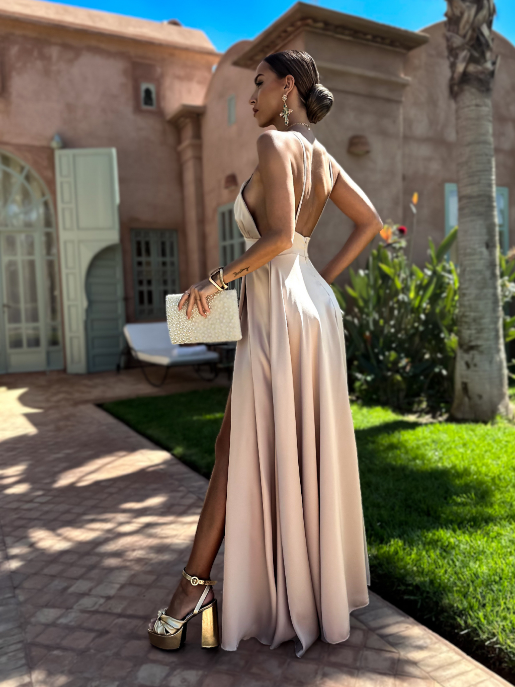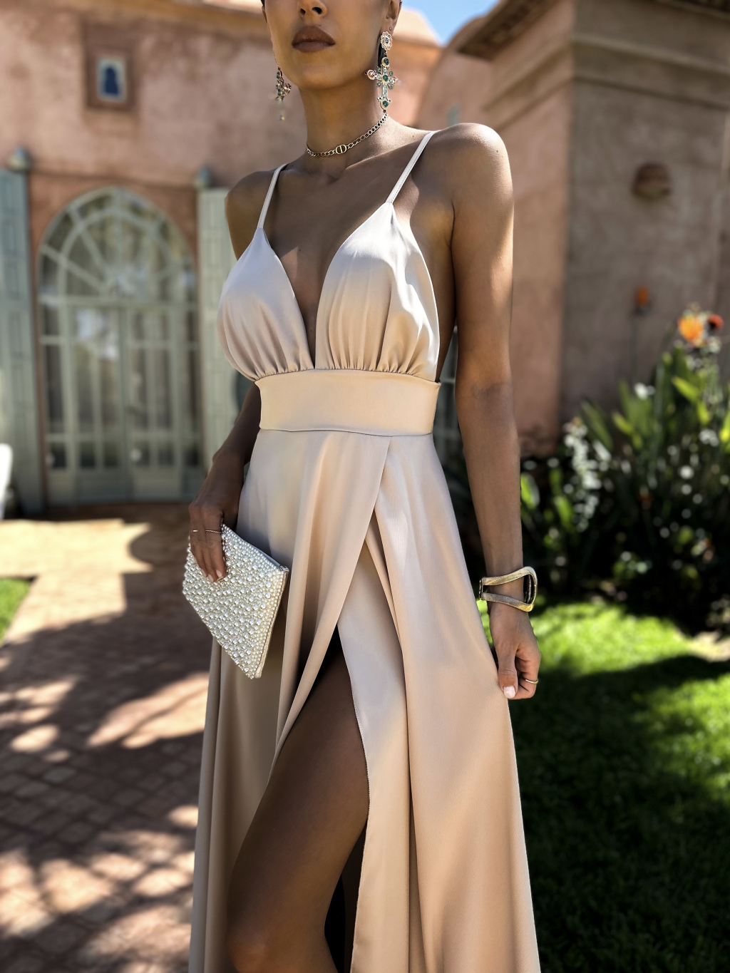 Krémové dlouhé společenské plesové šaty TINUS na ramínka