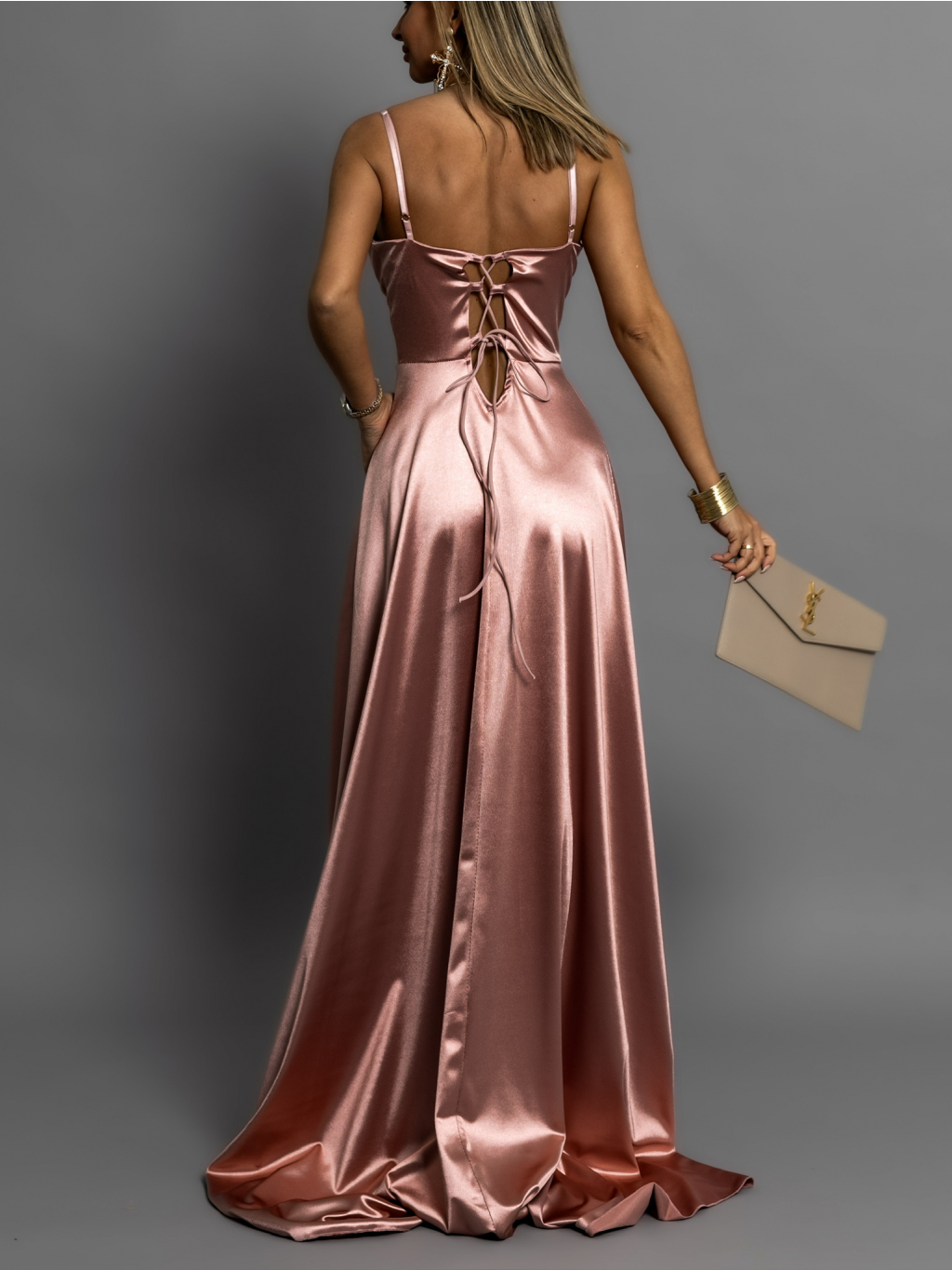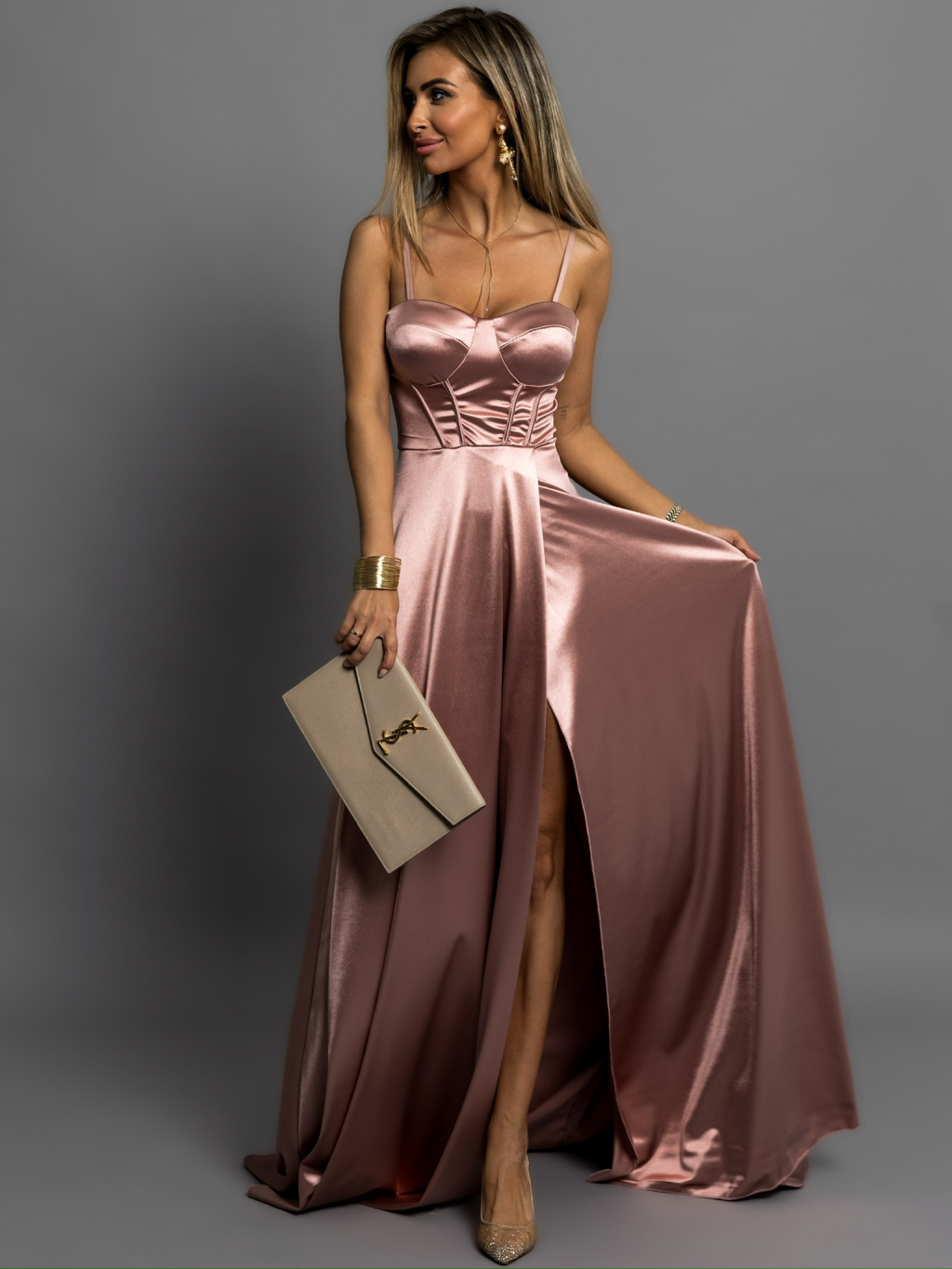 Starorůžové saténové dlouhé korzetové šaty KALALOT
