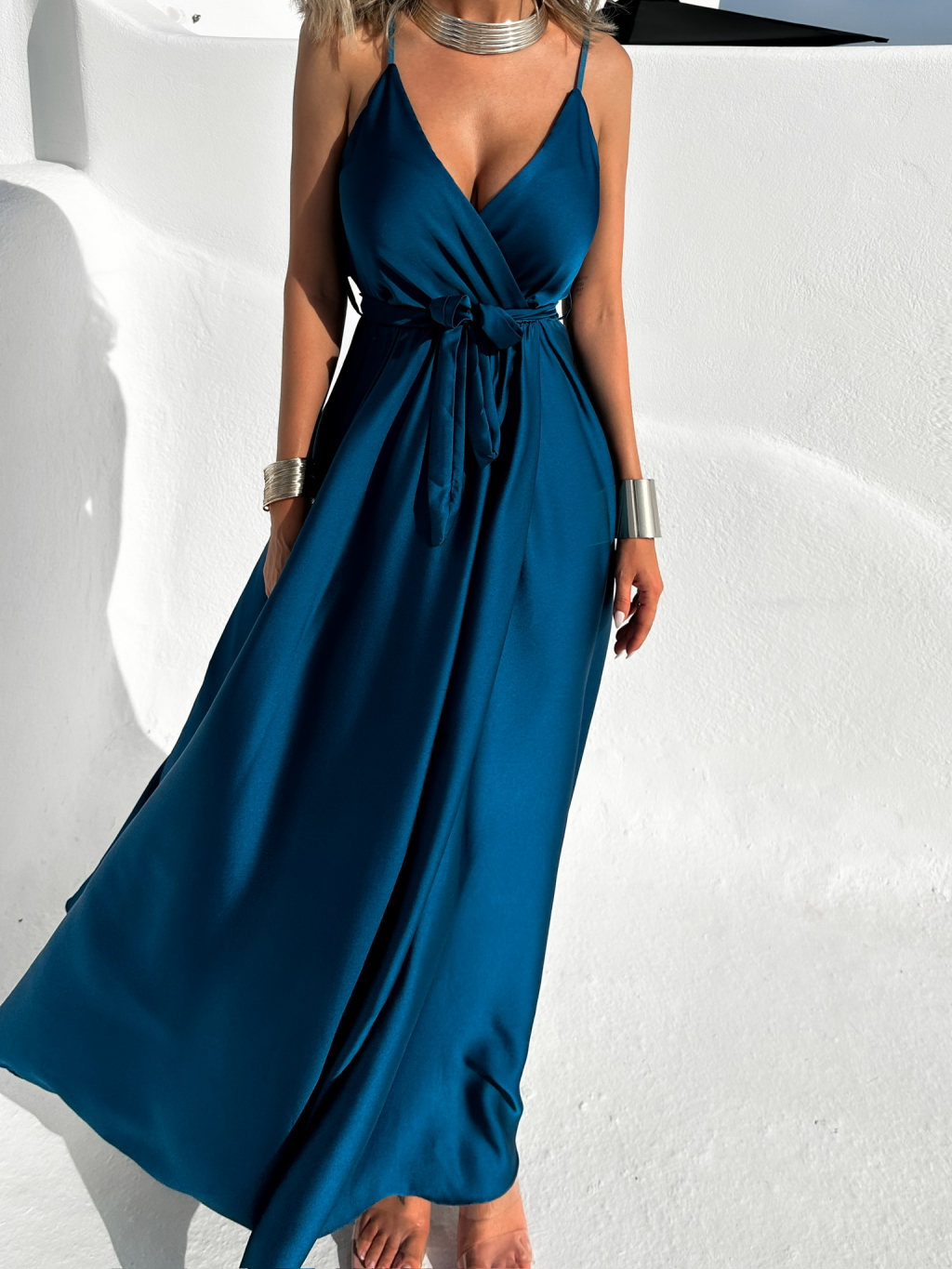 Tmavě petrolejové saténové dlouhé šaty FAIRYTALE