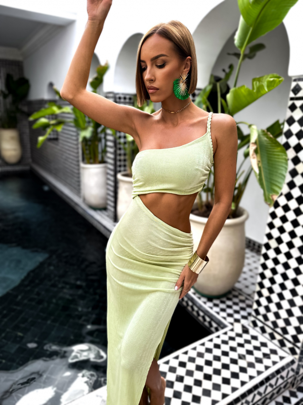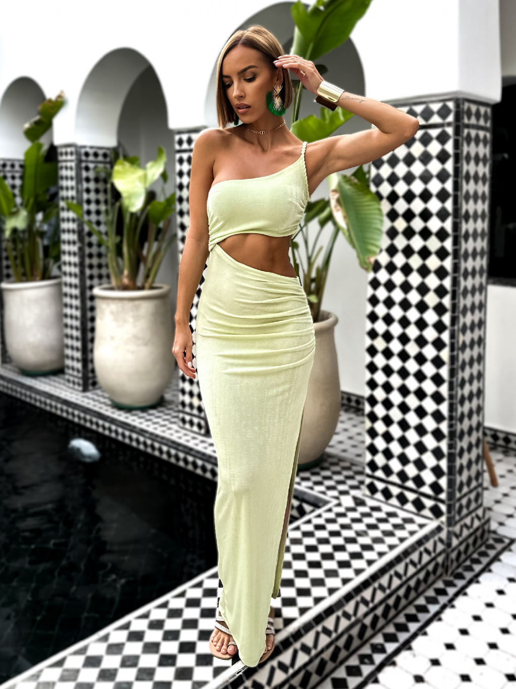 Zelené večerní šaty VAPORYN přes jedno rameno