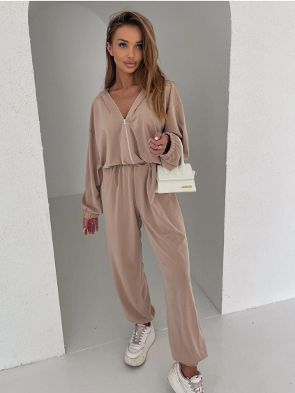 Tmavě hnědá luxusní široká tepláková souprava MATHUA