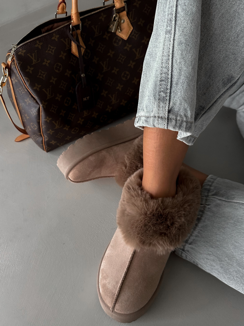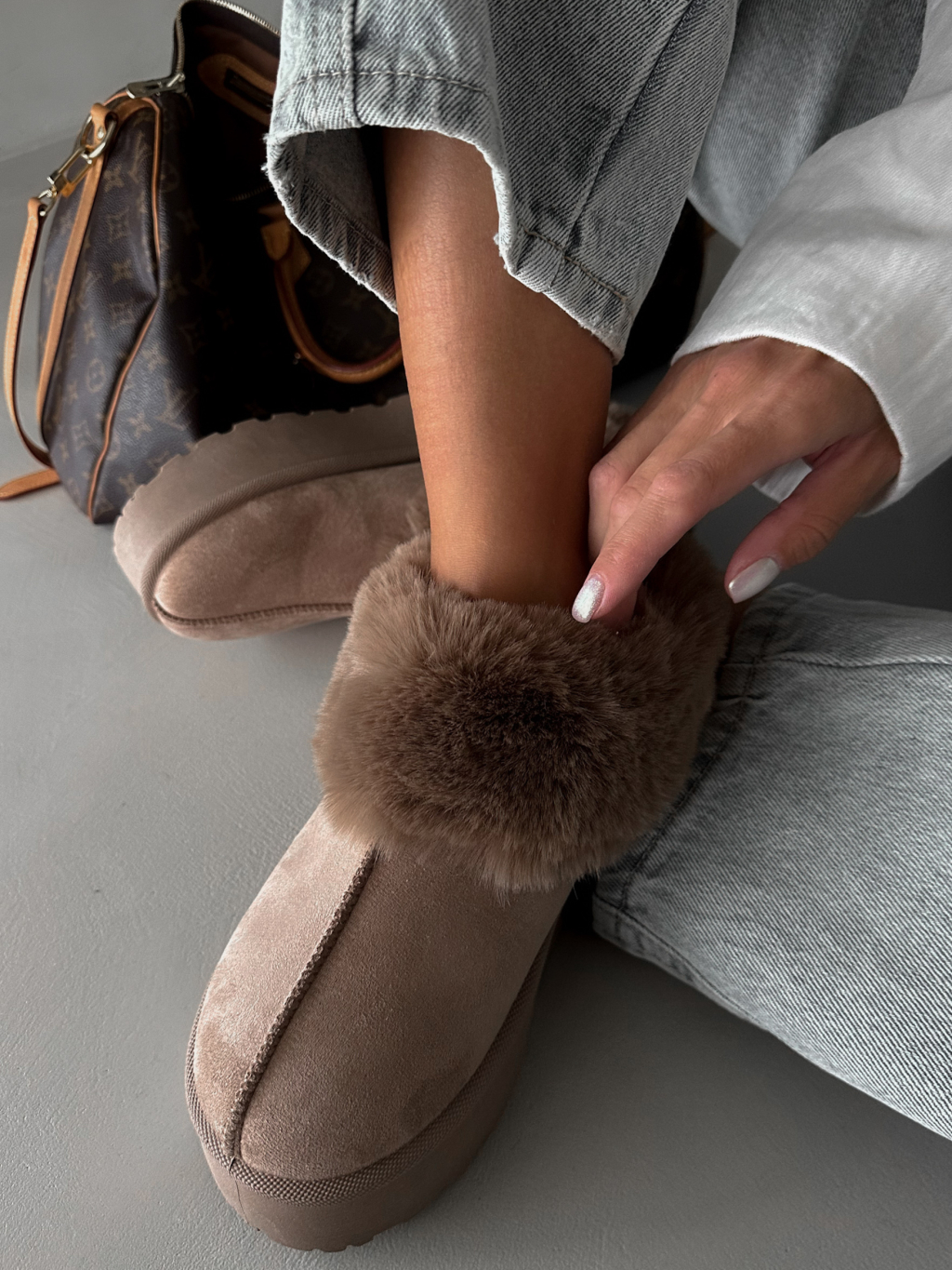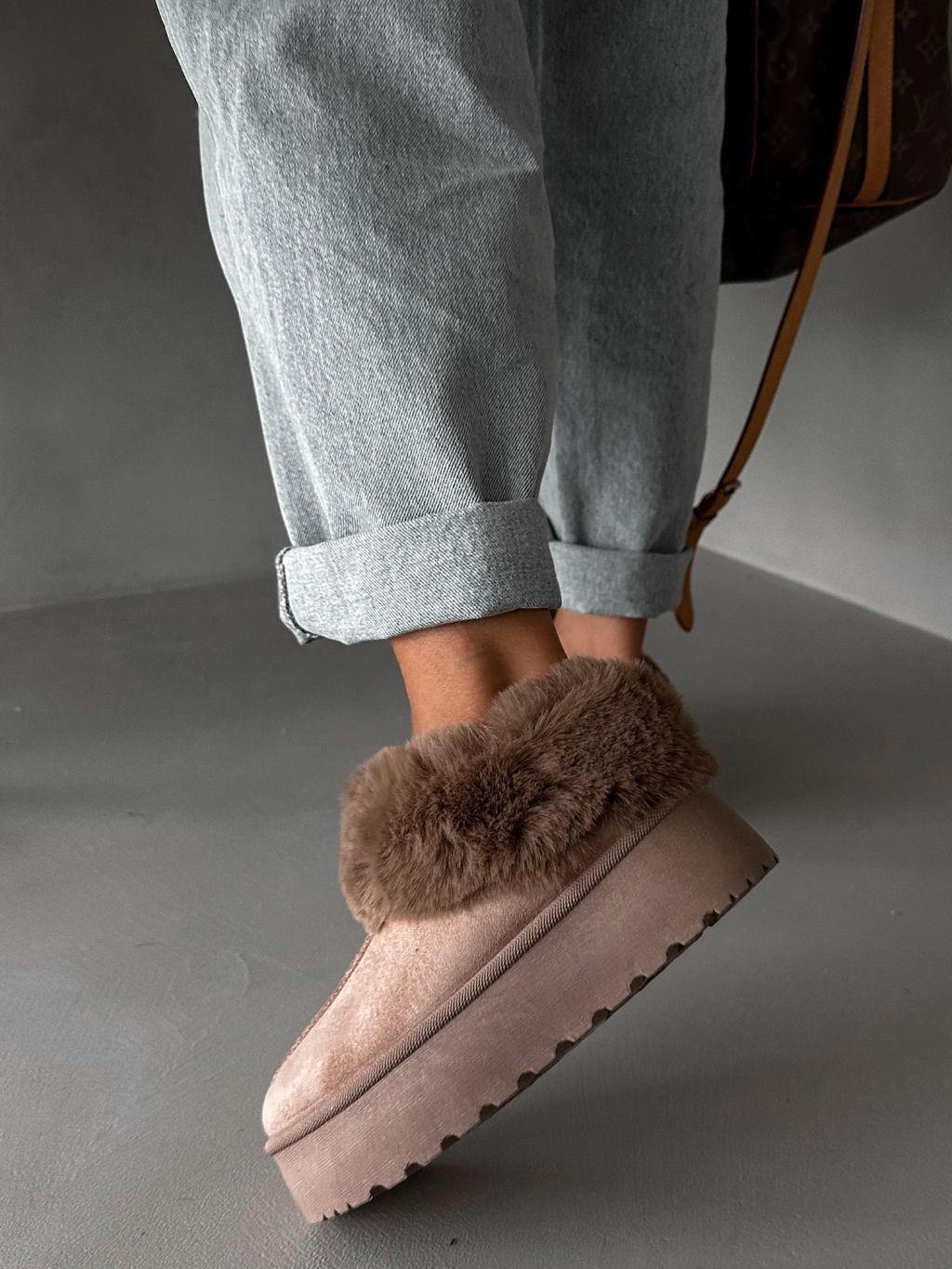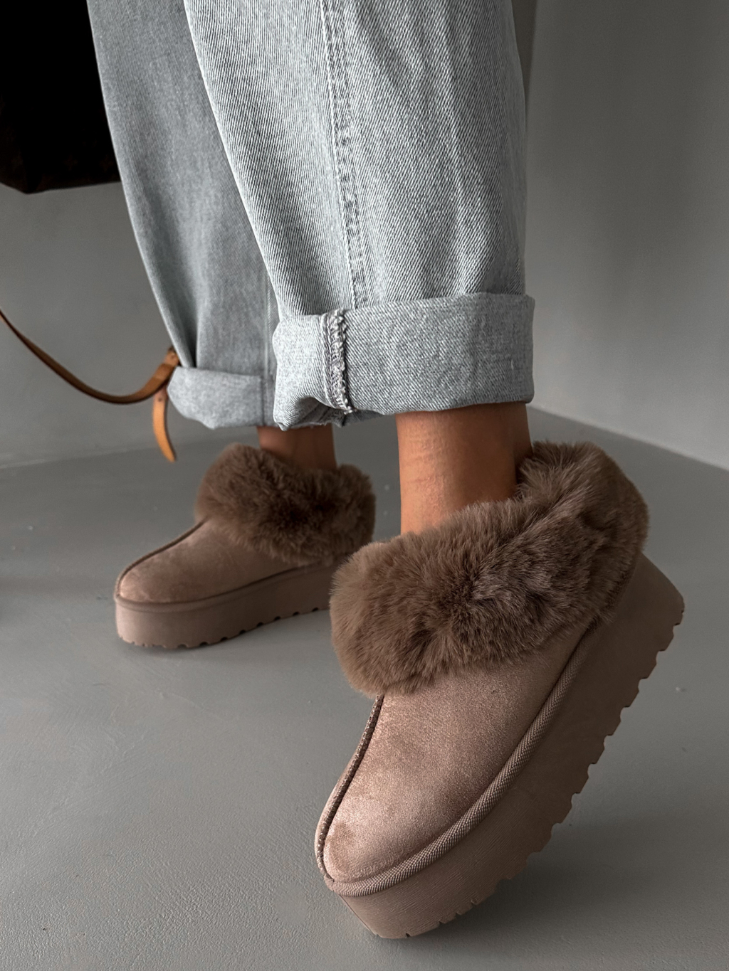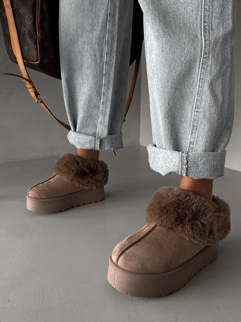 Hnědé pantofle válenky SONIA s vysokou podrážkou