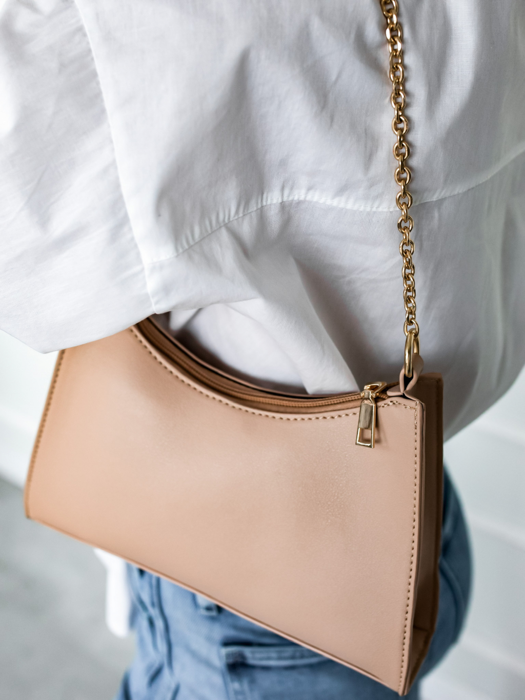 Béžová kabelka RENTER s kapsičkou a zlatým řetízkem